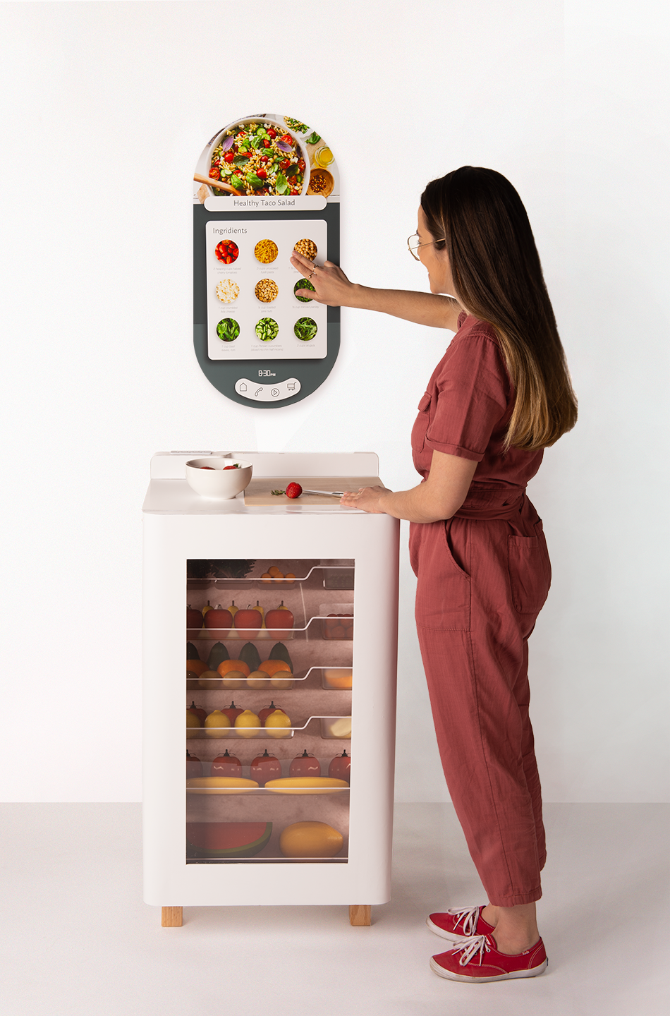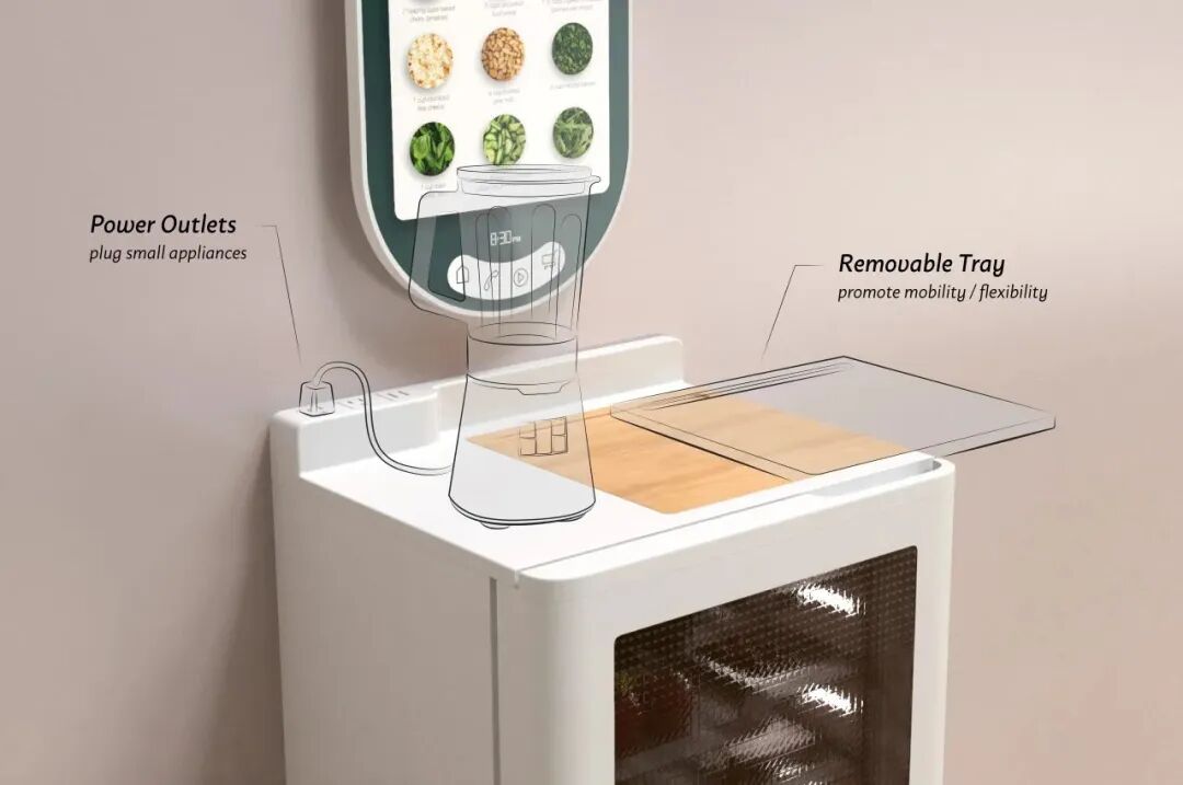 Fresh Fridge 是一款智能冰箱,可以分析每个用户不同的饮食和健康习惯,全天分配营养餐。突出的主要技术细节是位于小冰箱正上方的 Fresh Fridge 数字界面。
