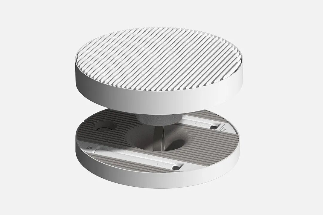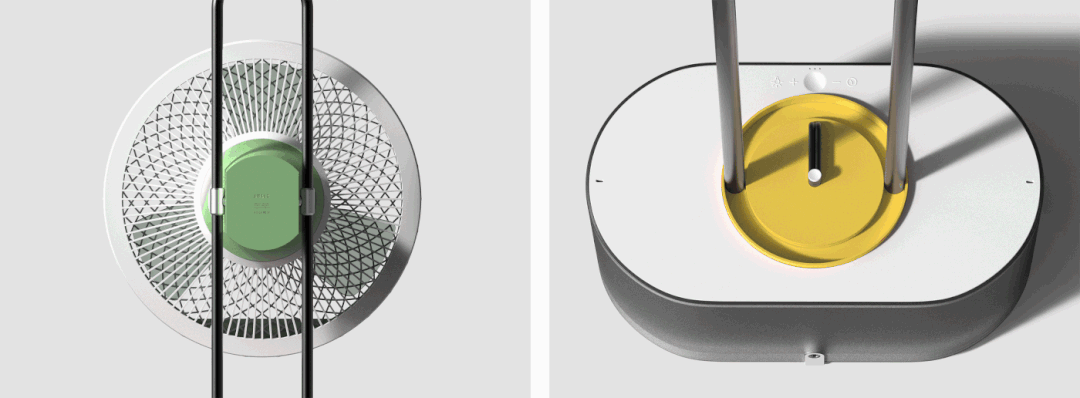 现有风扇旋转角度有限,会转到无人的方向在不必要的地方浪费风力。为了改善这一点,Angle提出了可以随意调节旋转角度的电风扇设计。用户可以像调节时钟一样旋转角度调节器,向需要的方向送风。此外底座还设计有氛围灯,可在入睡时营造舒适环境。