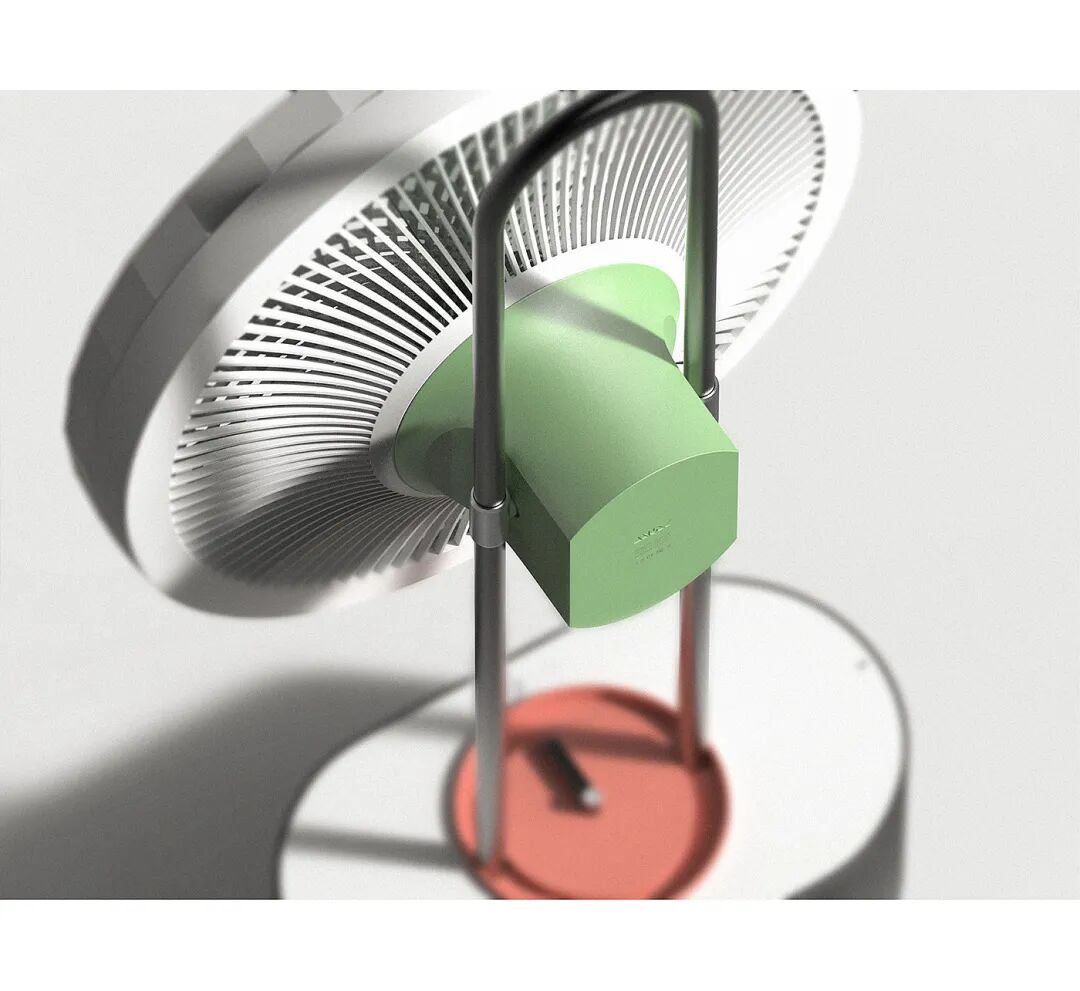 LeVentilo是一款功能简单的风扇,柔软且平易近人,扇形叶片让人想起在水中推动的桨。它们由一个阀杆支撑,通过分散支撑内芯和外壳,使不同元件之间连接。该产品的设计挑战在于如何使用可见组件,如叶片和纯功能性安全屏蔽元件。