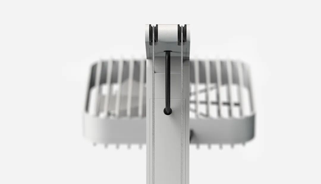 如同台灯一般的极简风扇设计,可以通过转动支架将风扇移动到理想的位置和方向。作为一个桌面风扇设计,在增加功能性的同时节约了使用空间。无需使用时可以简便折叠,轻松收纳。