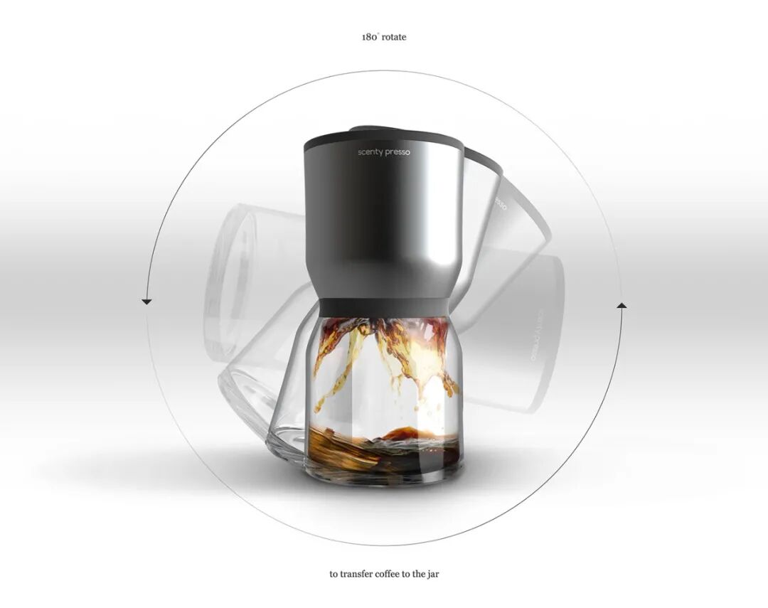 用户只需往 Scenty Presso 倒入咖啡粉和热水,就能冲泡咖啡。在冲泡完成后,剩下的咖啡渣像扩散器,因此,用 Scenty Presso 循环利用废物减少了浪费,还让享用咖啡时感觉更加的愉快。