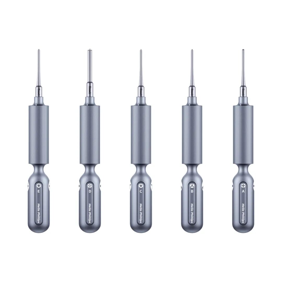 超触感螺丝刀是一款精密螺丝的拆装工具,改善了精密螺丝拆装时易滑的问题,圆润小巧的铝合金刀柄更符合各种应用场景下的人机工程,下位双轴承设计保证了旋转时有更高的稳定性与同轴度,产品整体旨在传递最直接、最真实的指尖触感反馈。