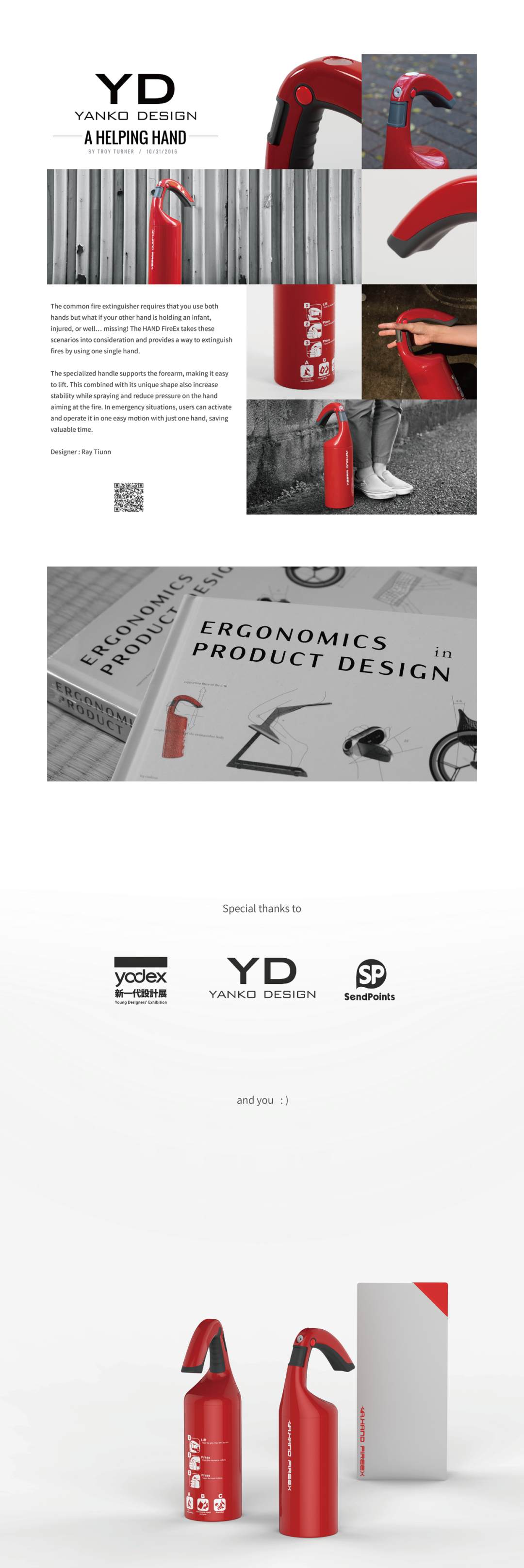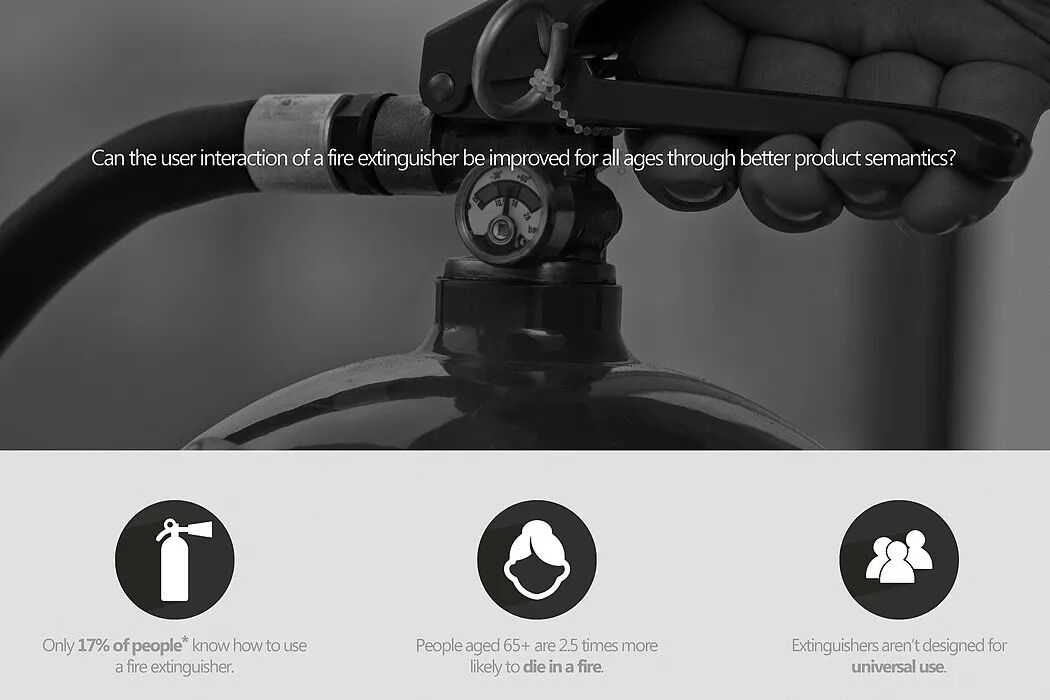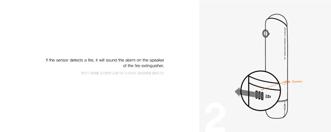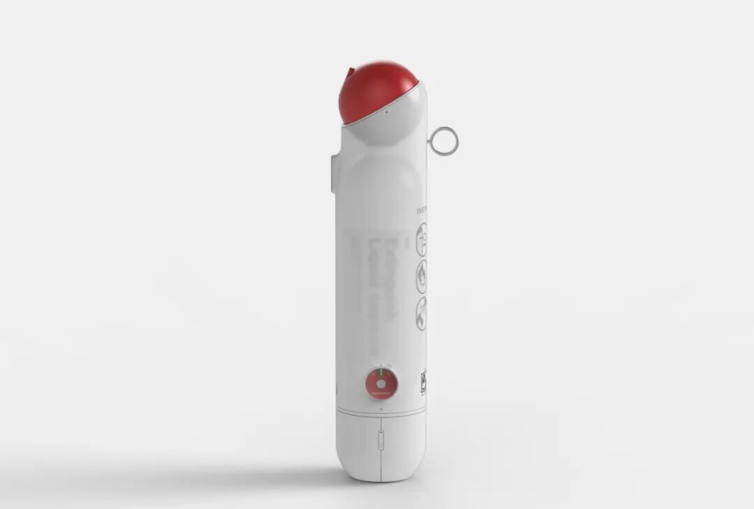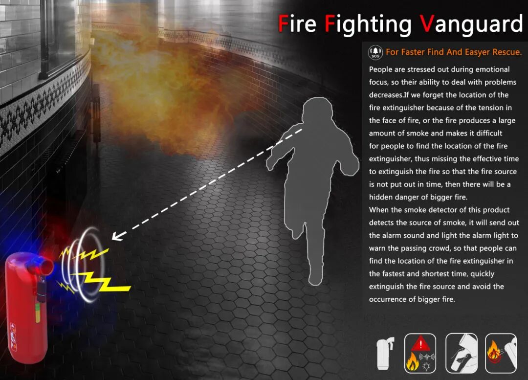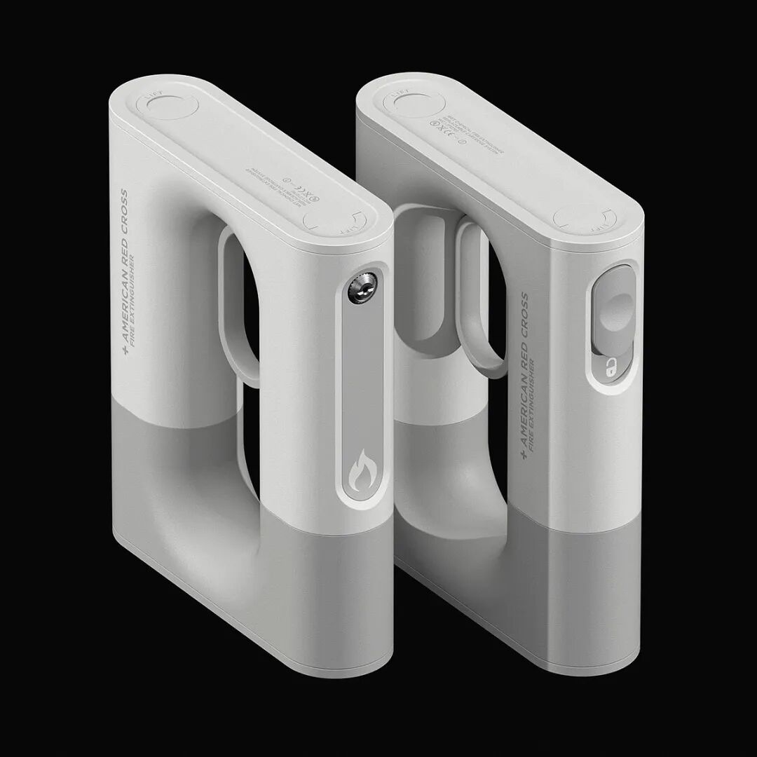 设计师设想了一种新型的特定地点专用灭火器,该灭火器专用于商业厨房或易发生火灾的实验室,使用湿化学药筒(类似于二氧化碳药筒)快速扑灭油脂或化学火灾。 该装置将安装在墙上,任何人都可以快速将灭火器拉出使用,拆卸后,警报器会响起。