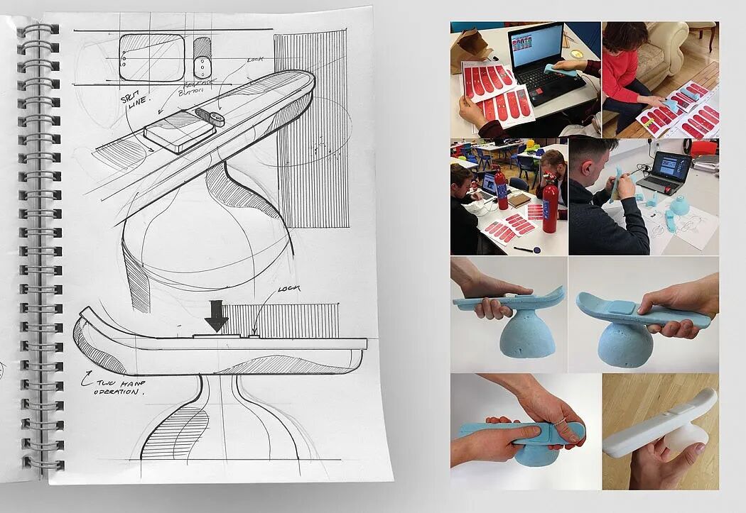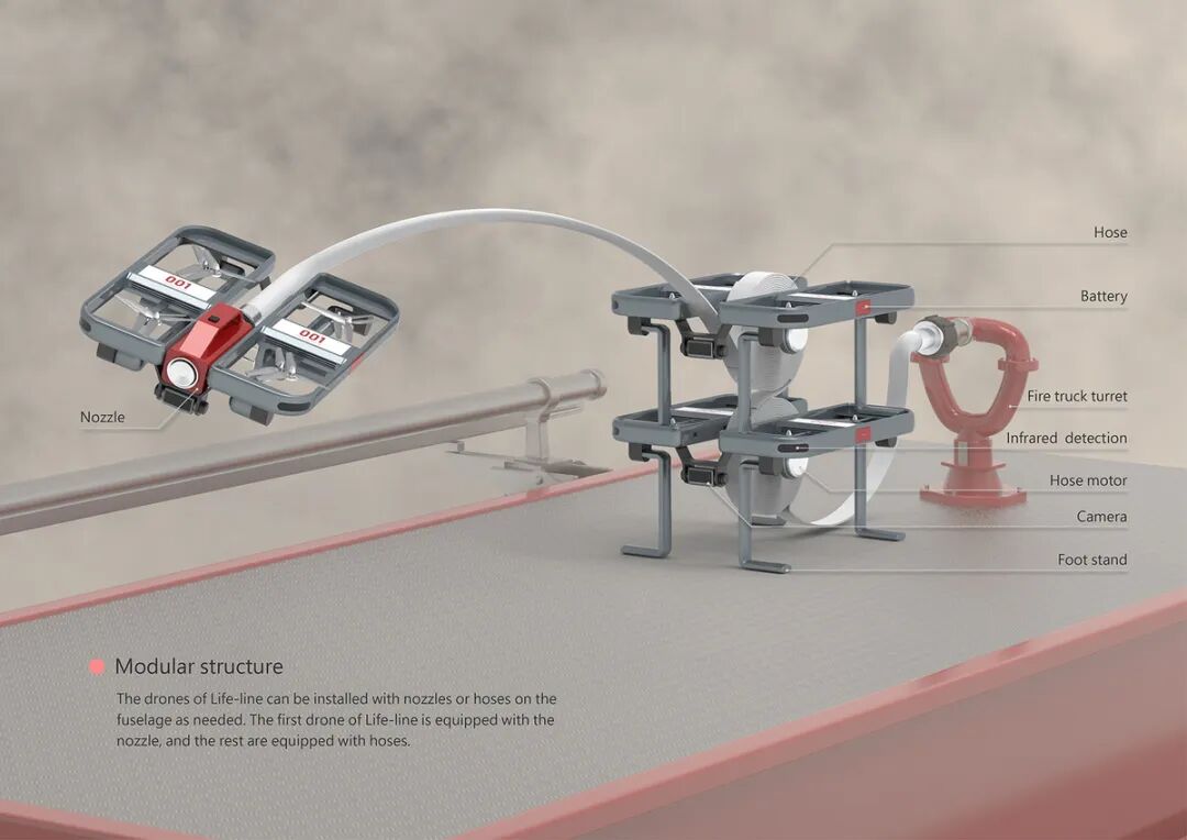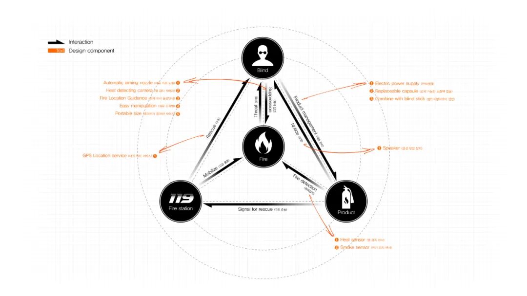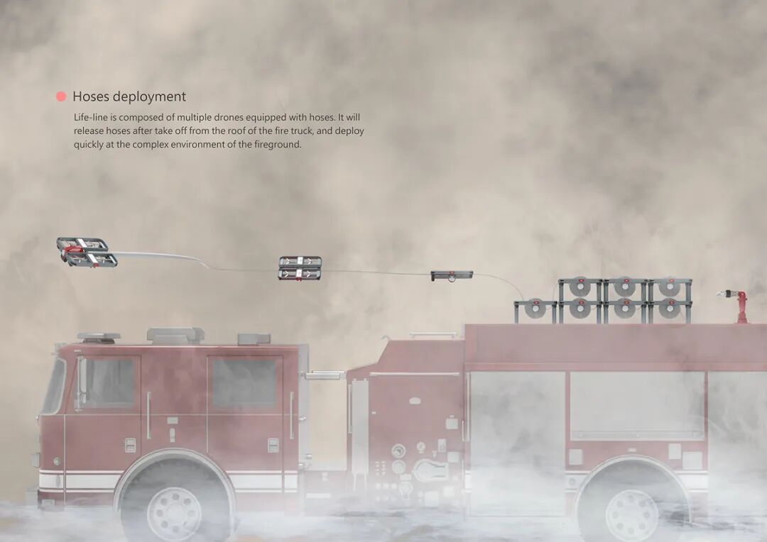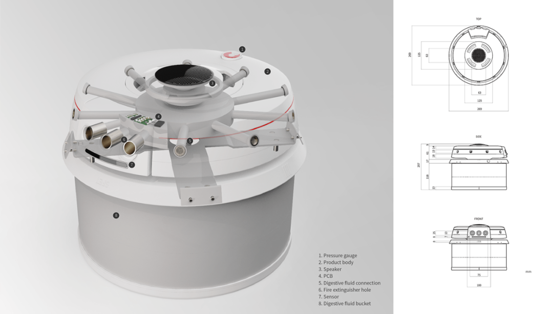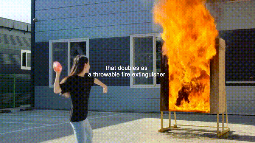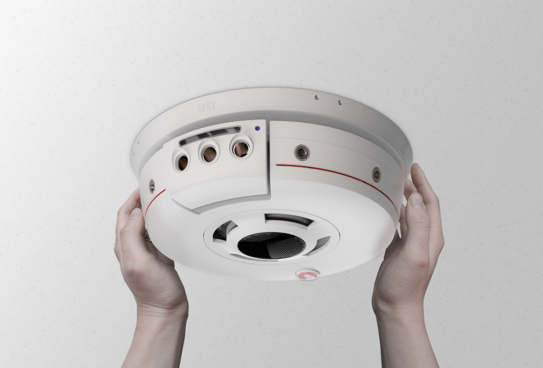 设计师设想了一种新型的特定地点专用灭火器,该灭火器专用于商业厨房或易发生火灾的实验室,使用湿化学药筒(类似于二氧化碳药筒)快速扑灭油脂或化学火灾。 该装置将安装在墙上,任何人都可以快速将灭火器拉出使用,拆卸后,警报器会响起。