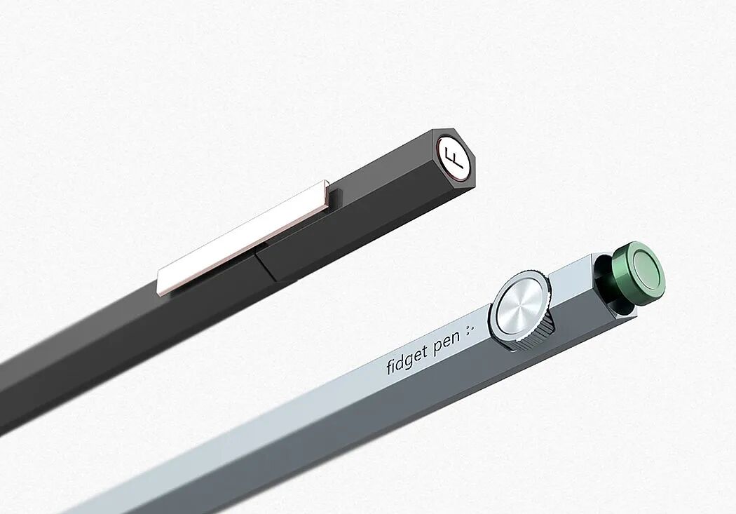 适合多动症和焦躁症患者的笔——Fidget pen。当你陷入焦躁时,可随意转动滚轮或者按压末端按钮。这样的设计有抗烦躁的功能,同时帮助提高专注力。