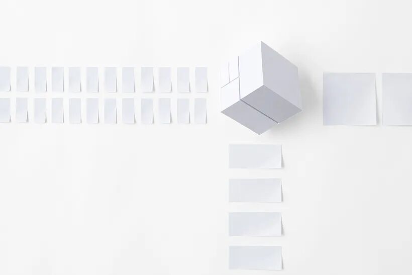 三种不同形状的便利贴被统一成一个由正方形、大矩形和小矩形组成的奇异形状。它由一种立方体的形式组成,其中一个角被切断,这些便利贴可以被剥掉,因为它处于倾斜的位置。这促进了这些便利贴的使用,便于人们使用各种不同的用途,例如使用它们作为备忘录、书签等等。