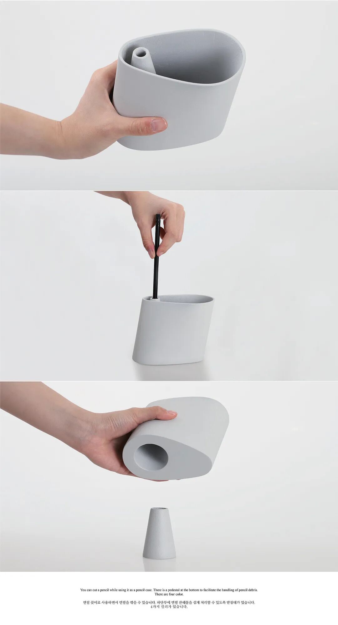 PHPS 一体文具包含铅笔架和卷笔刀。除了可以削铅笔外,PHPS同时还可以收纳铅笔,使我们的桌面保持整洁。