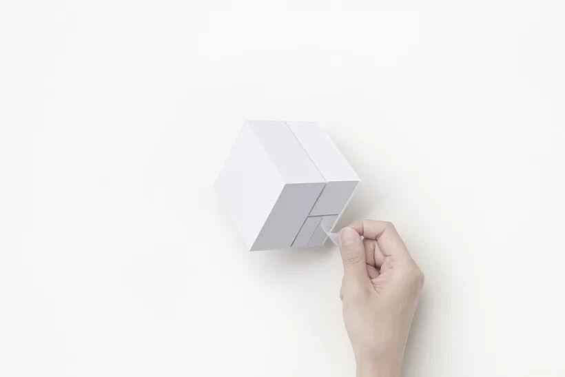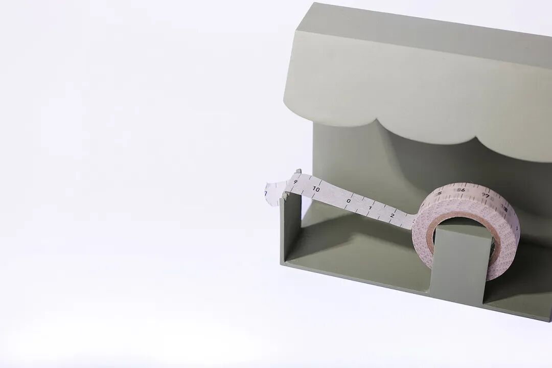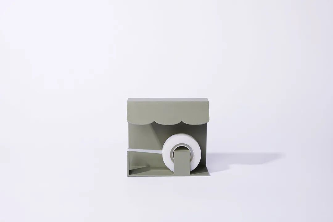 这款胶带分割器仿照老式便利店的造型,顶部是遮凉棚,便利店的店面部分则用来放置胶带,给人亲切的怀旧感。