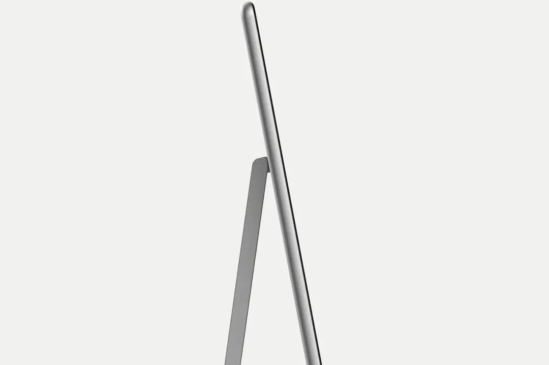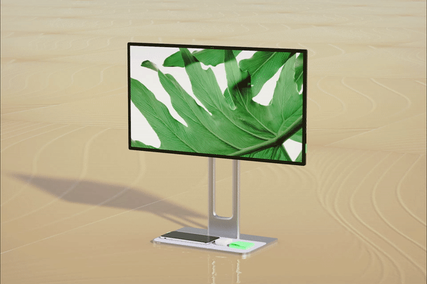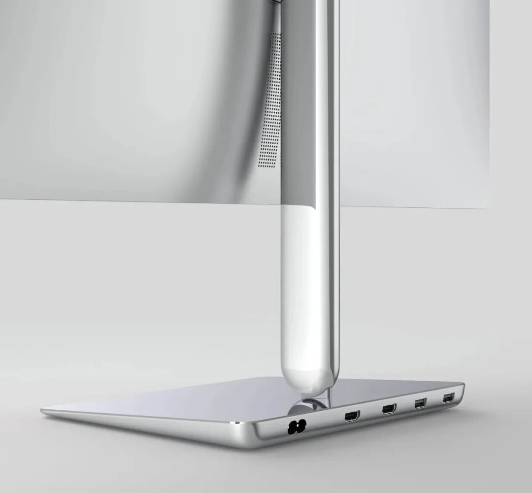 该设计的目标是尽量减少屏幕以外的所有元素,因此设计师将产品简化为精致、稳重的结构,在其镜面底座之上似乎不可思议地保持平衡。非常优雅且别适用于各种干净和简约的办公环境。