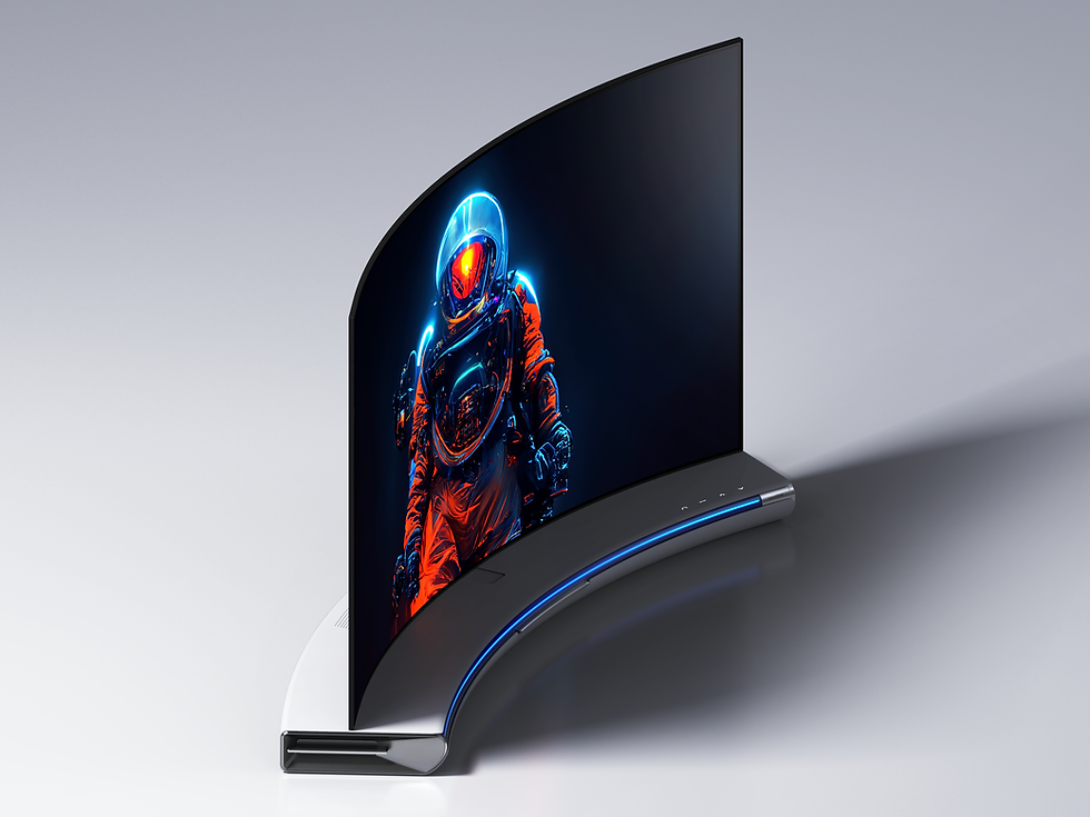 这是一款面向游戏玩家的 42 英寸可弯曲且不需要背光源或液晶显示器的自发光显示器,可以通过触摸按钮自由弯曲和展开。看电影的时候,可以当纯平使用;玩游戏时,它根据游戏中的情况实施适当的曲率,提供极致的沉浸感,与平板显示器相比,最大限度地提高了空间感和真实感。