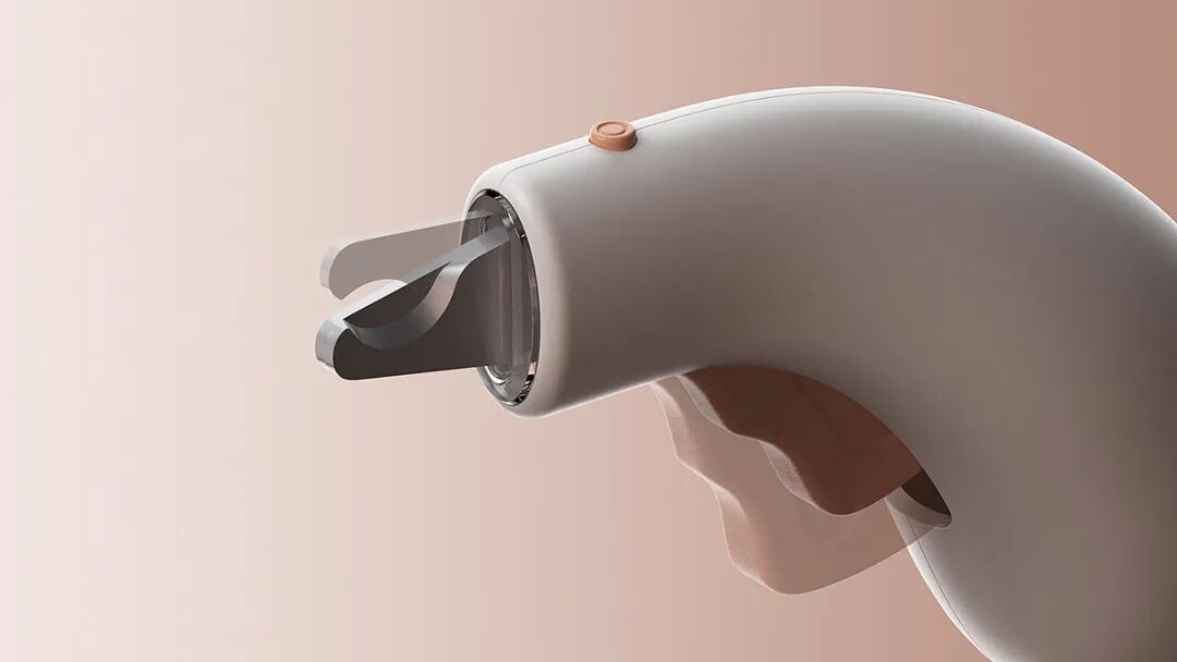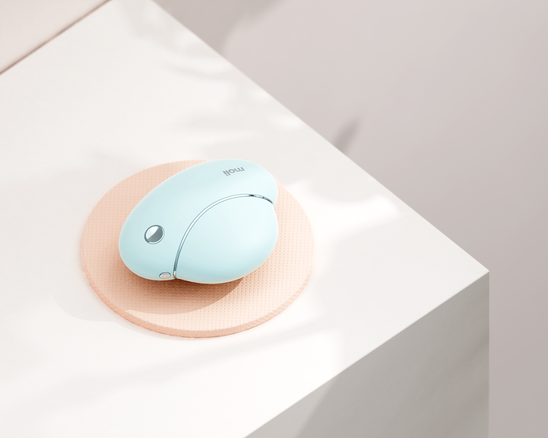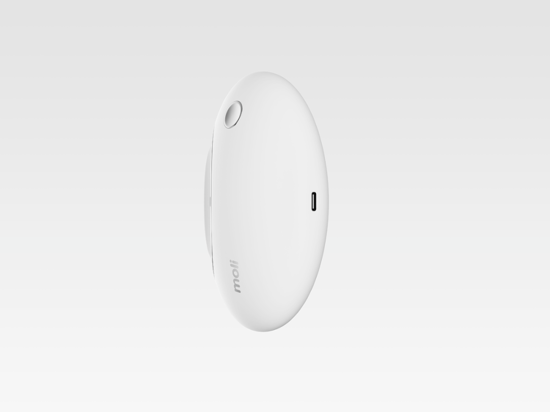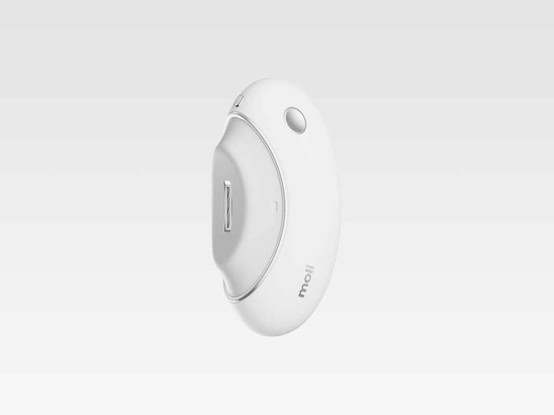 MOLI是一款电动指甲刀,造型柔和,整体采用硅胶包裹,握感非常舒适。按键和logo,左右呼应,握持时大拇指刚好可以放到按键,方便操控。