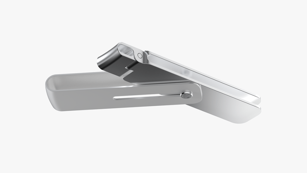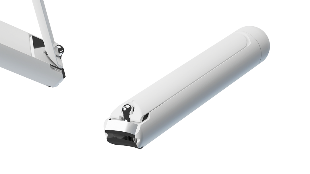 一种可以防止指甲过度剪断的指甲刀设计,形状是一个简单的圆柱体。剪刀边缘之间的磁性机制形成一个曲面,防止儿童受伤。当使用者的指尖与指甲边缘垂直平齐时,自然的曲线会在指甲边缘和指甲之间拉出一个安全的距离,防止指甲过度切割。