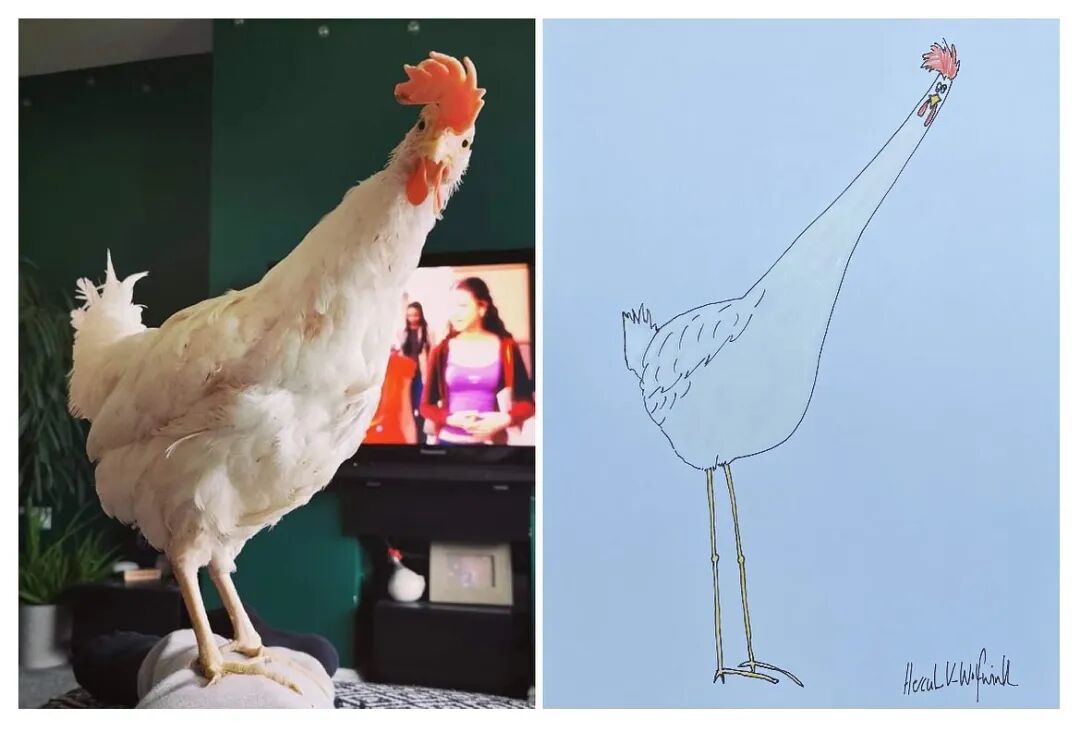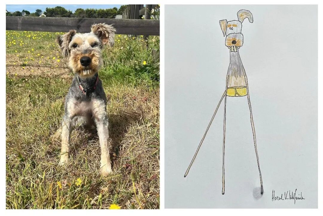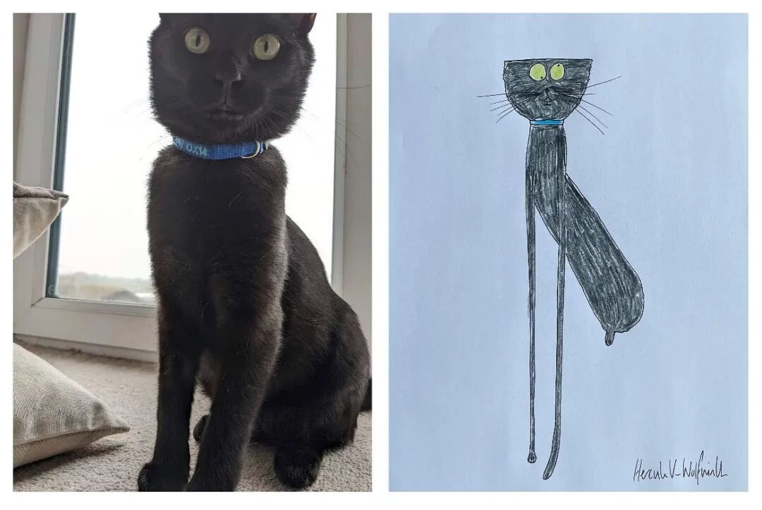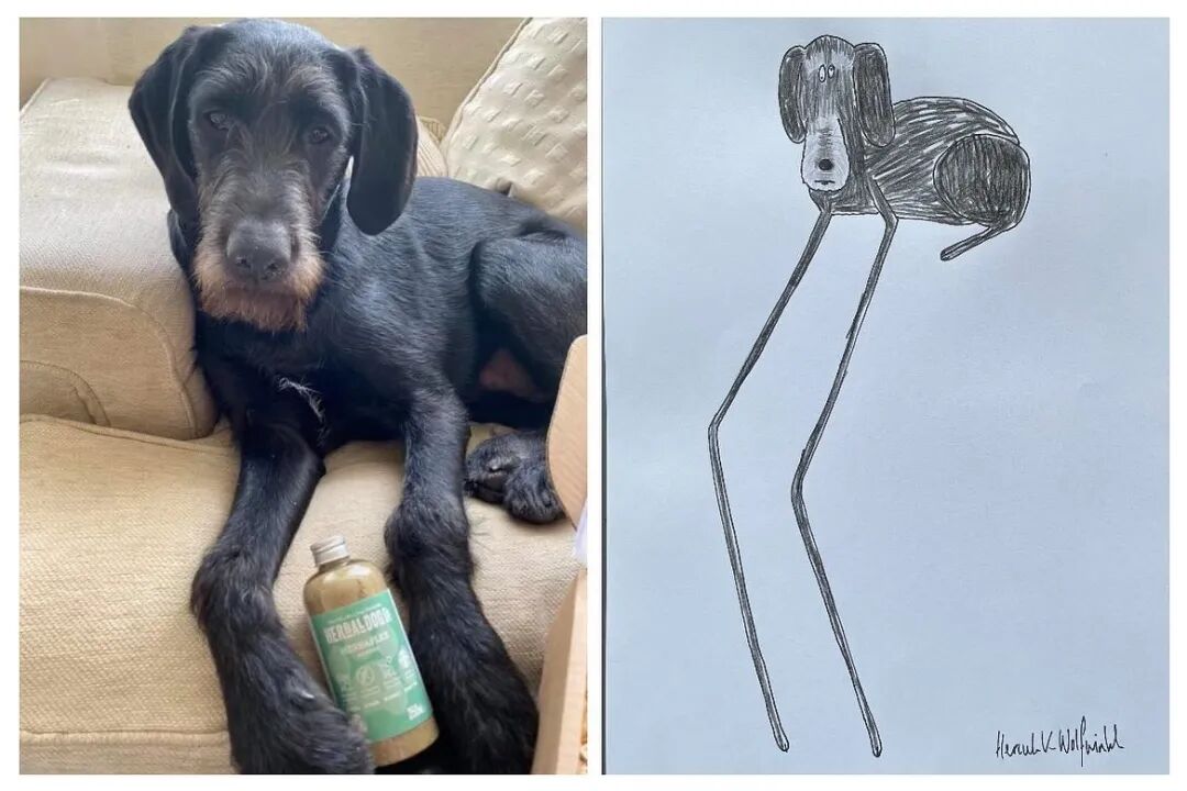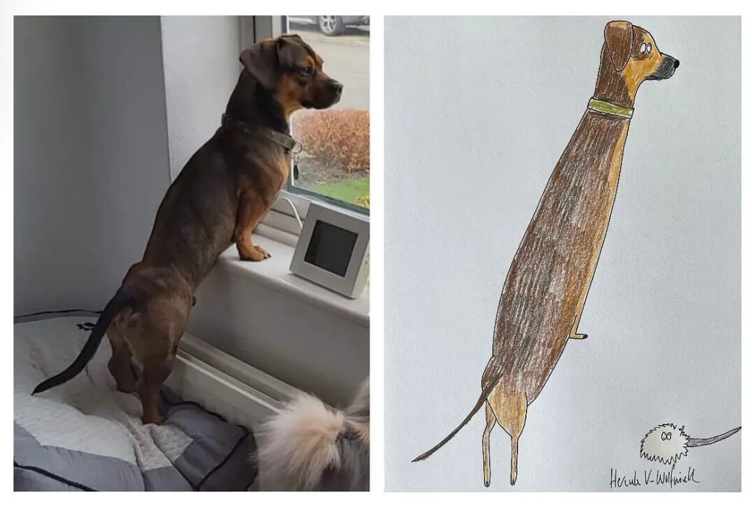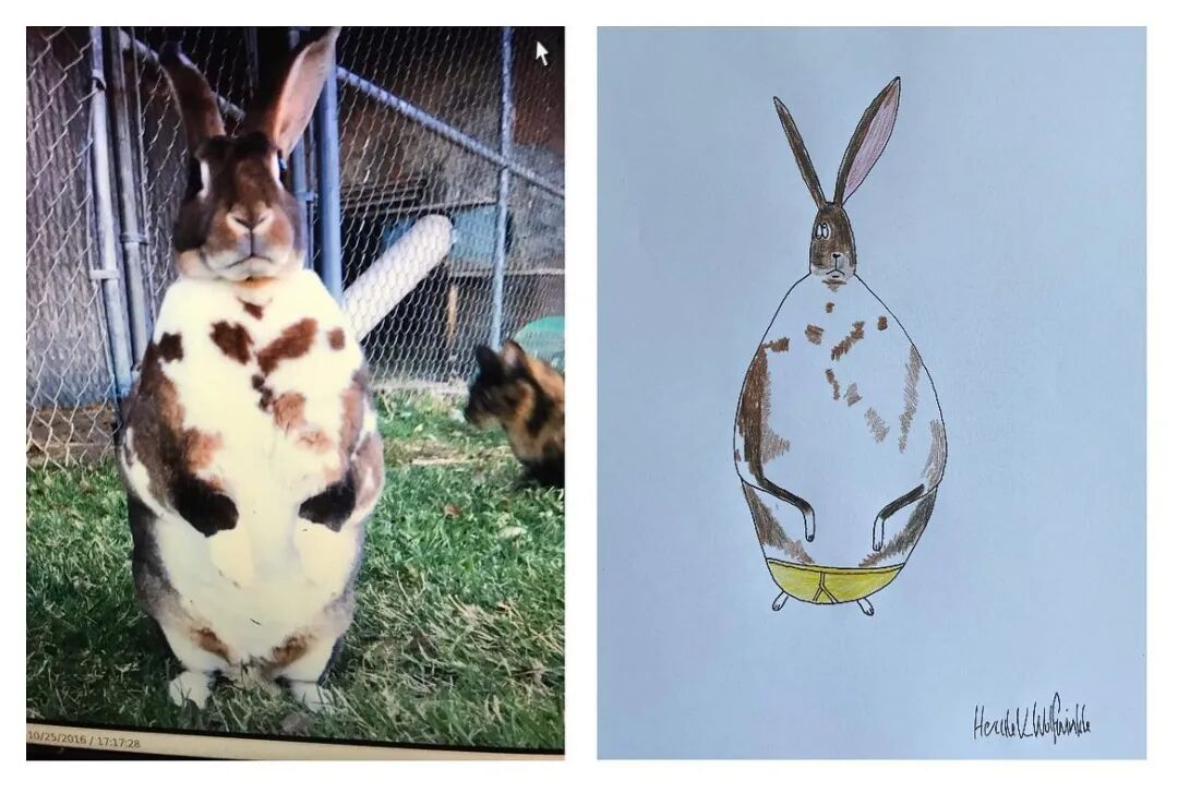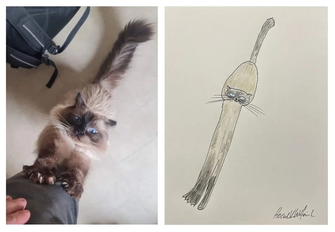 宠物是人类最好的朋友,一些喜欢宠物的人,更是把宠物作为自己的家人一样去对待,为它们拍摄有意思的照片,很多人就是拿着自己拍摄的宠物照片来让菲尔·赫克斯画成一幅画,可是,在他这里,即便是很漂亮的照片,也会被画得面目全非,被拉长的身子和大腿,呆呆的表情眼睛......画风一下就变得爆笑起来。