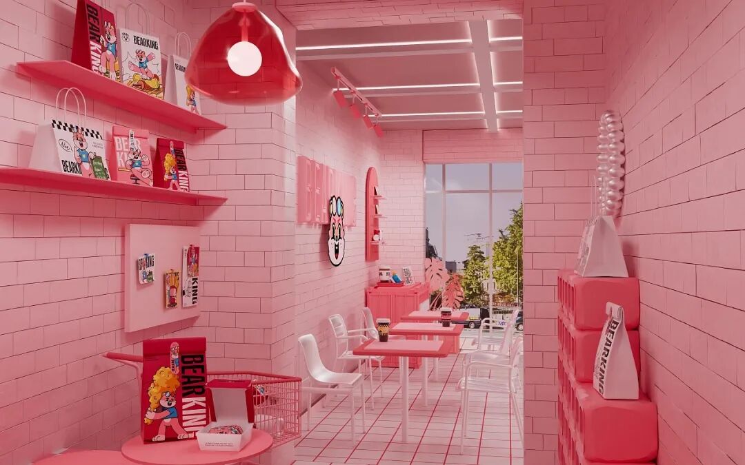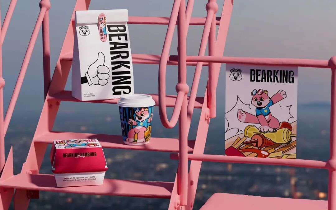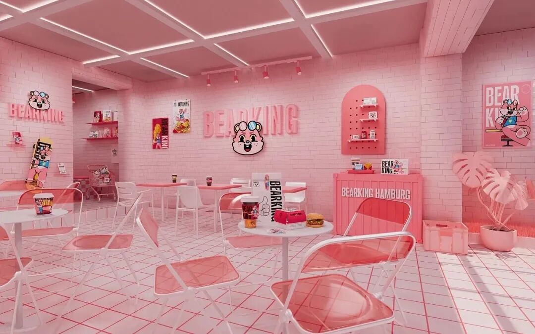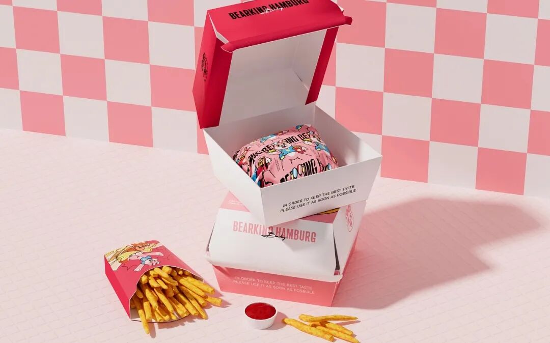 可看到粉兔用汉堡当秋千、薯条当玩具等