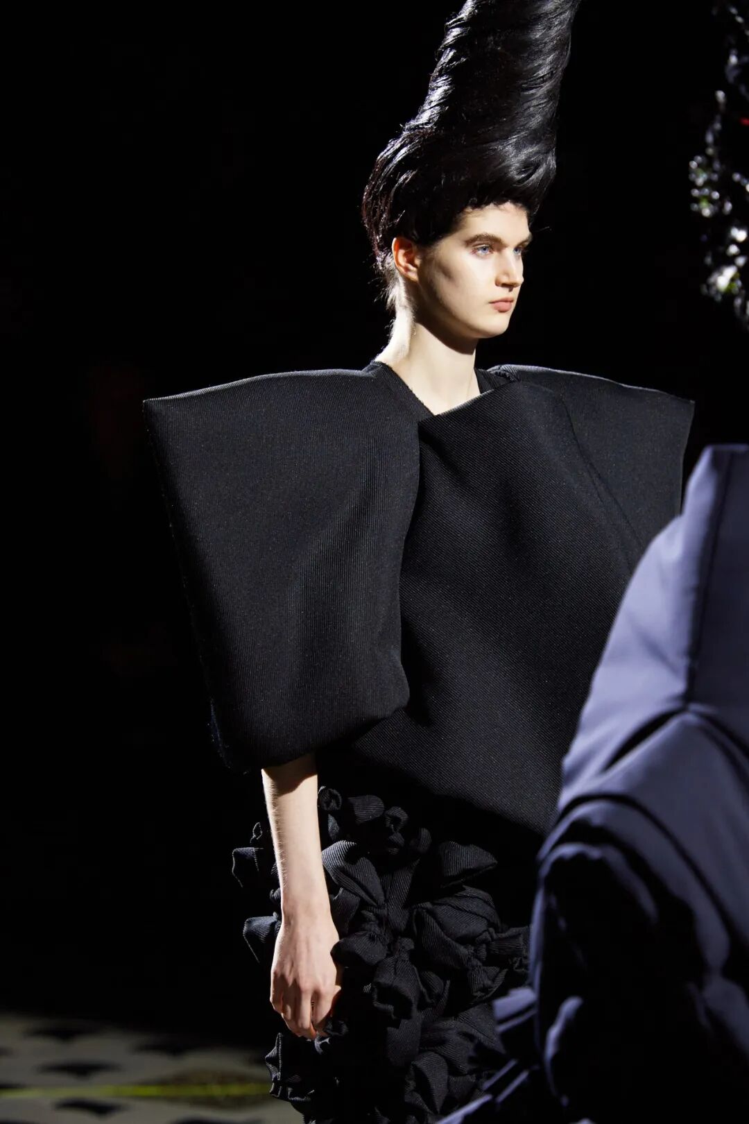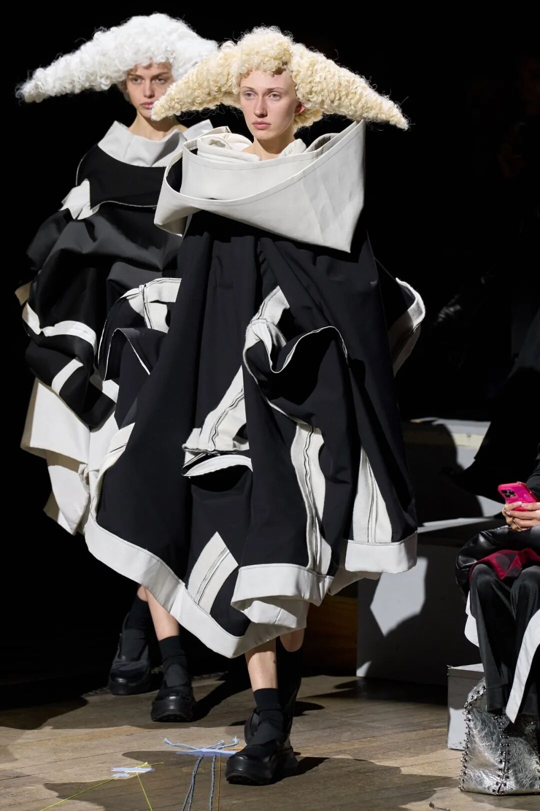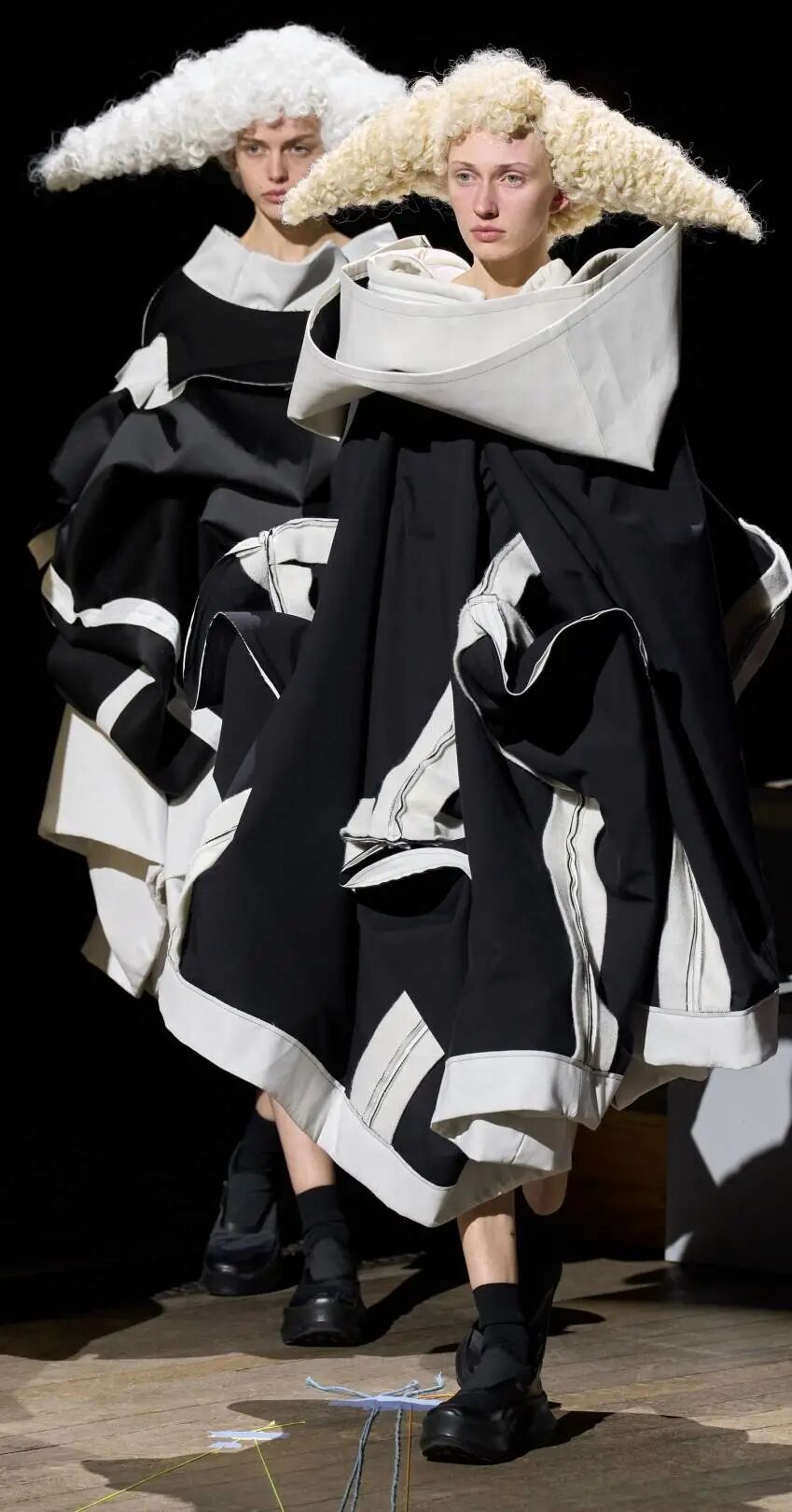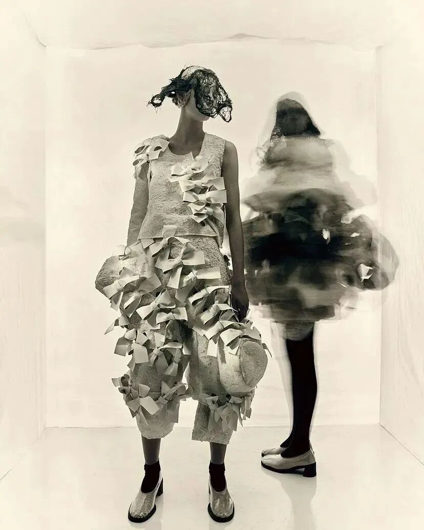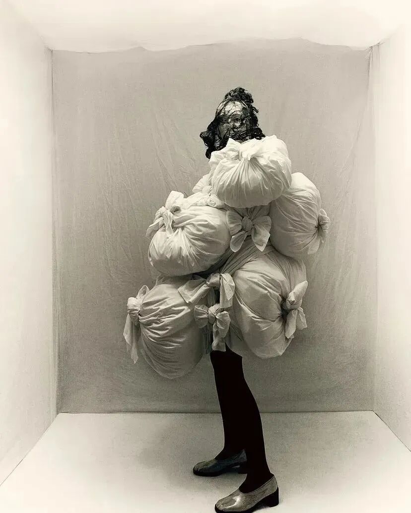 COMME DES GARCONS 2023SS系列川久保玲重返巴黎。在注重廓形的新探索下,延续以往黑白为主调的风格,并对面料以及设计试验性尝试。