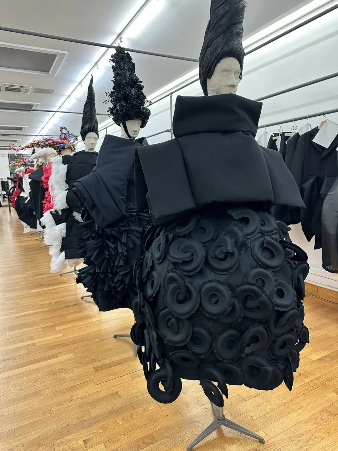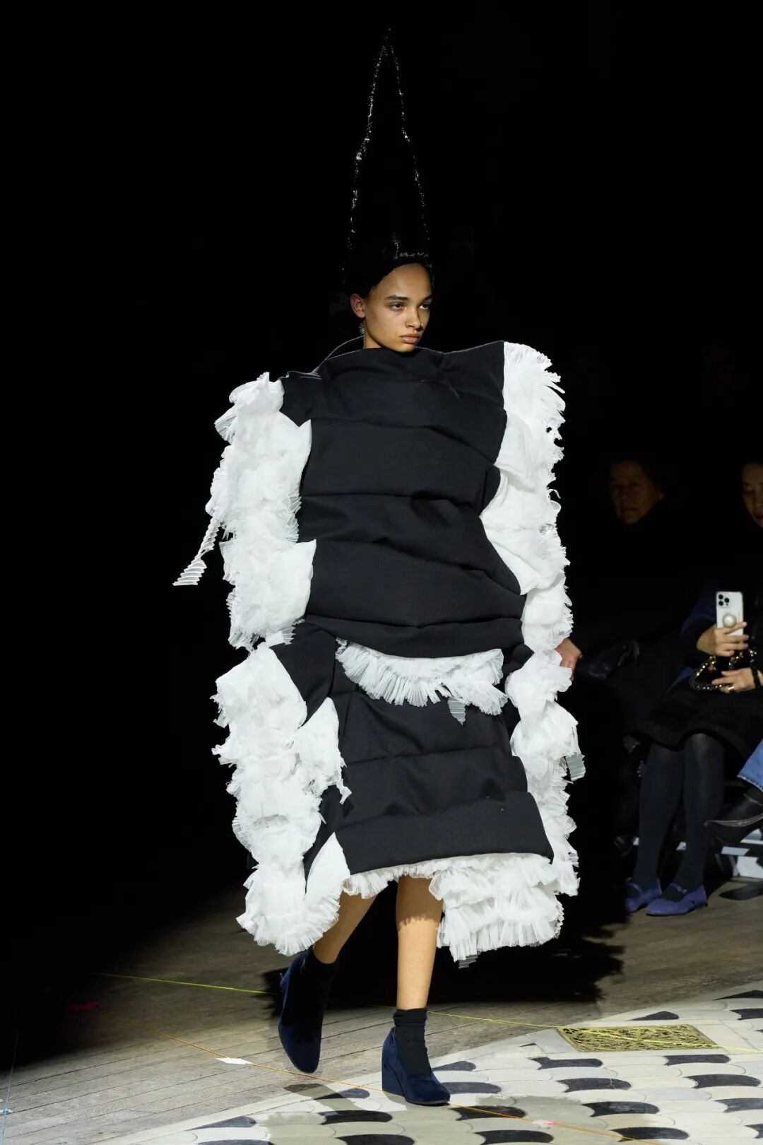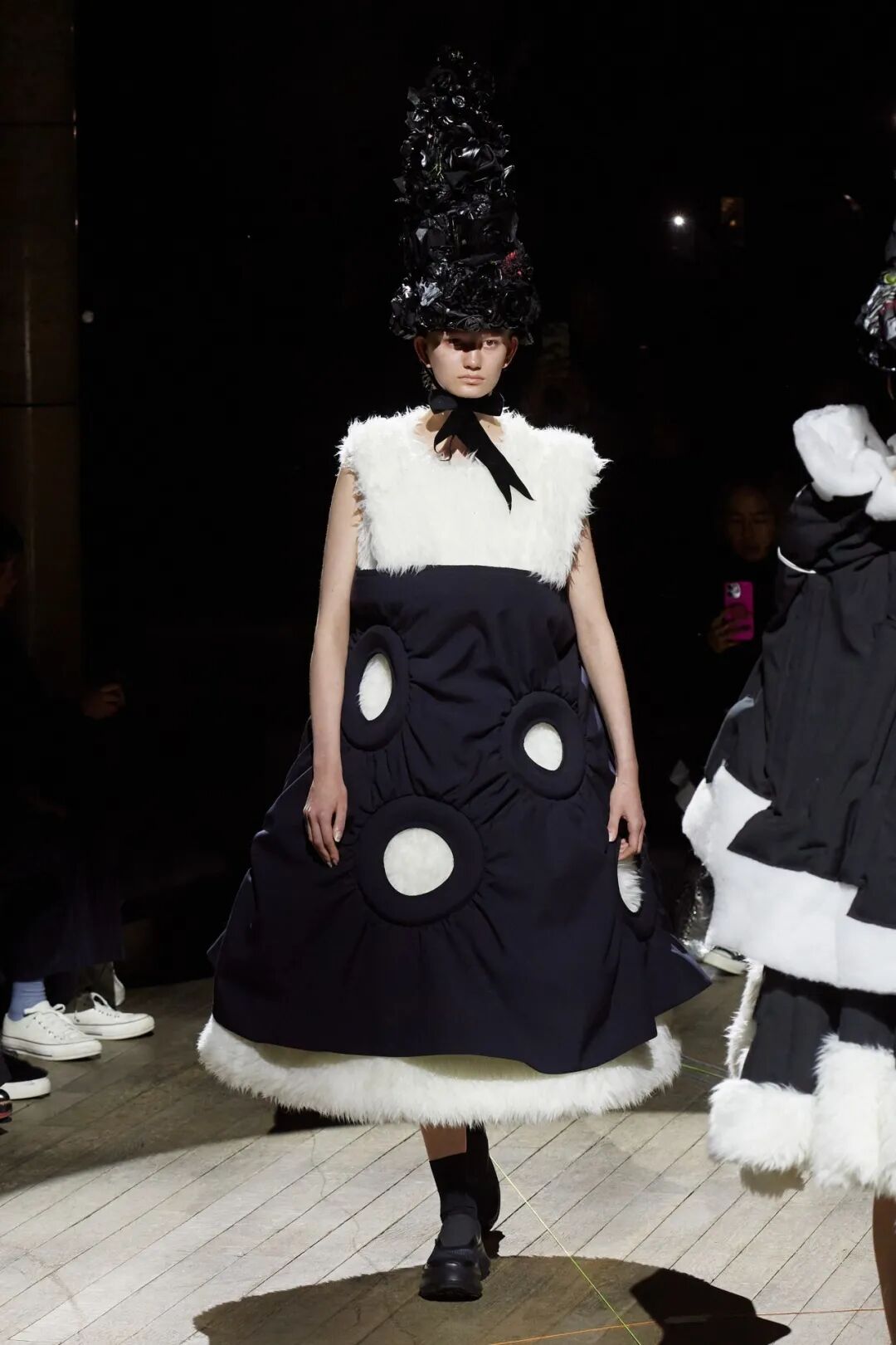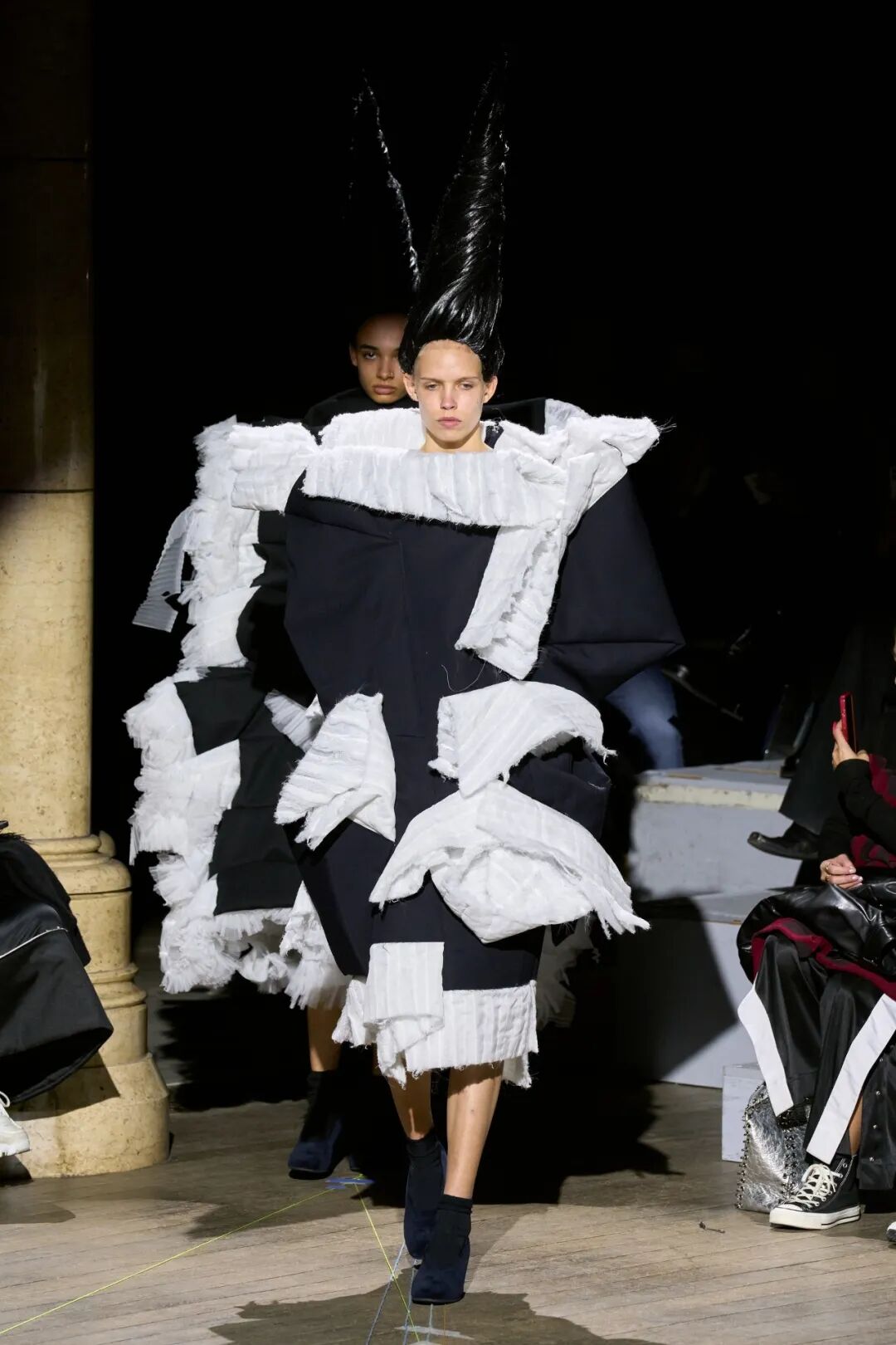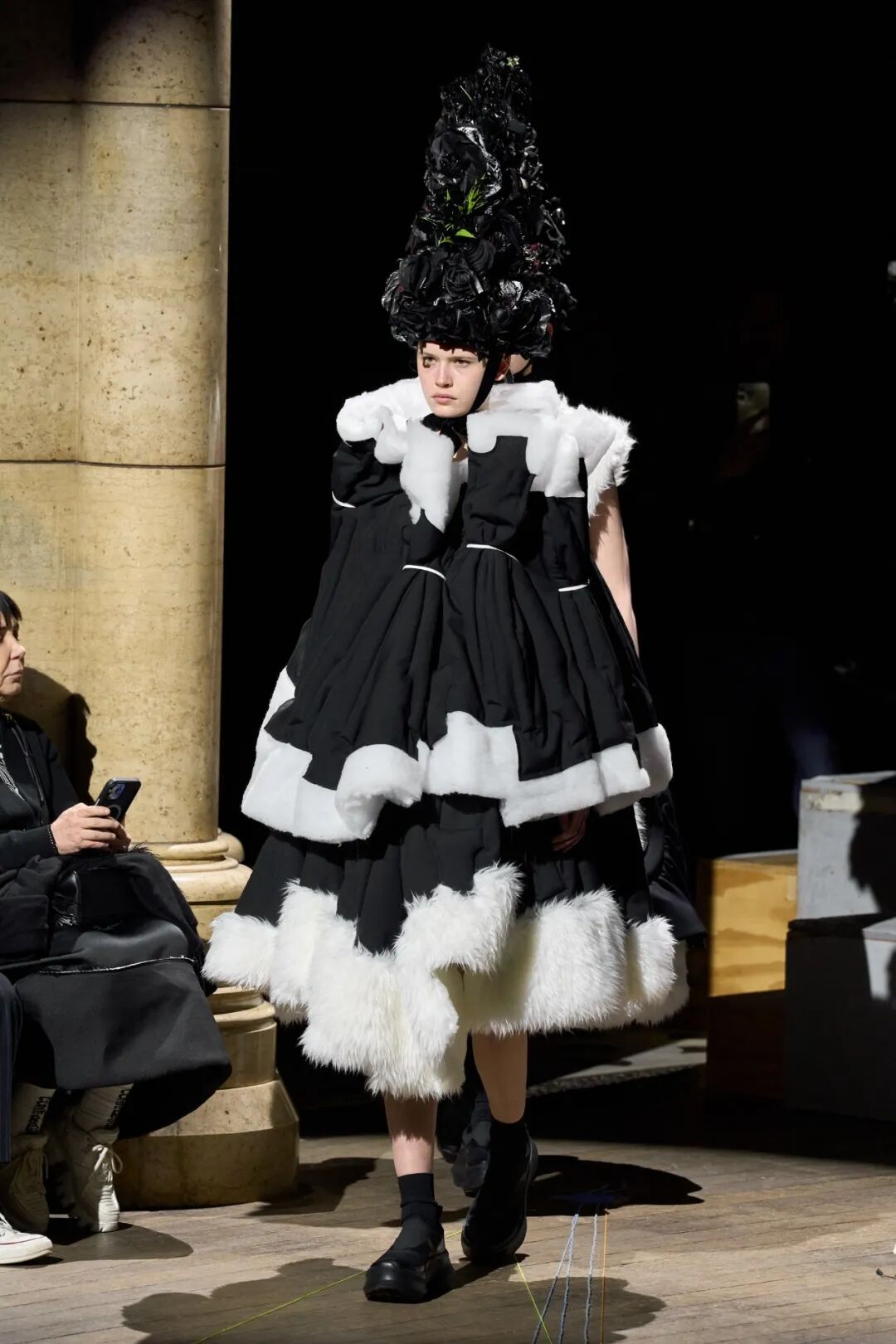 COMME DES GARCONS 2023SS系列川久保玲重返巴黎。在注重廓形的新探索下,延续以往黑白为主调的风格,并对面料以及设计试验性尝试。