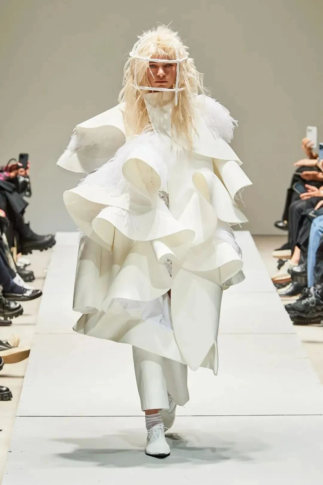 COMME DES GARCONSSS 2023 AW一如既往的,川久保玲依旧没有让我们失望,极度夸张与巨型的服装份量,挑战了刻板的审美观与当前的服装趋势,仿佛来自未来的轮廓,证明了她早已跳脱出“时装设计师”的逻辑。