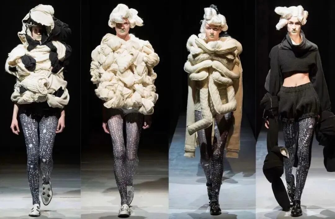 她以不对称、曲面状的设计,重新定义了美,掀起了一股反叛的日本时尚浪潮席卷时尚界:美可以是破落的、非结构的;美可以是不性感裸露而隐藏的;也因为这样,这些昂贵的怪衣服在销售时还必须配上如何穿的说明。