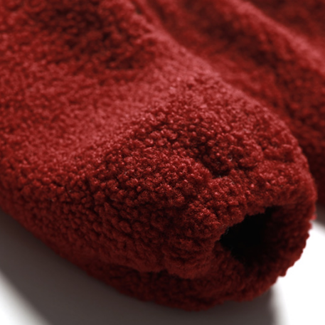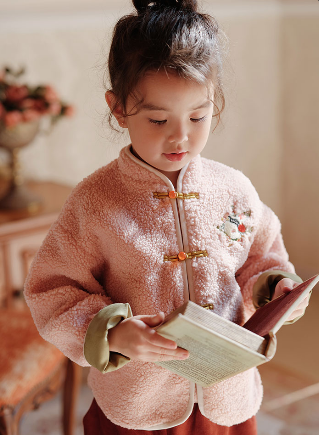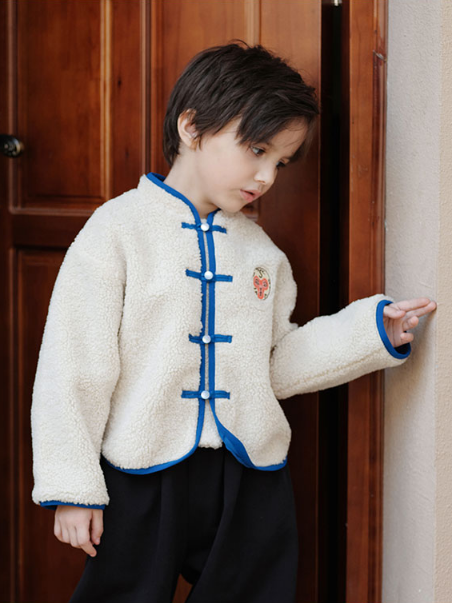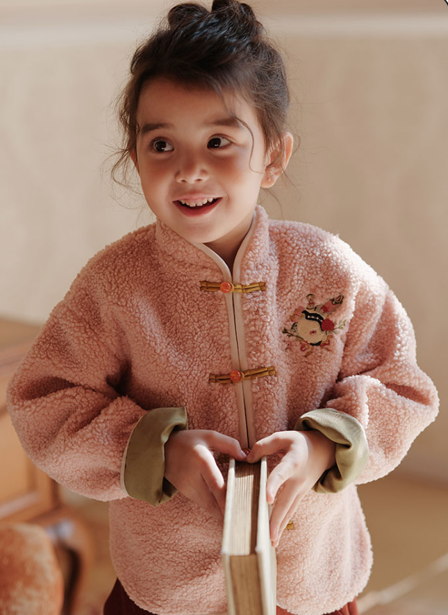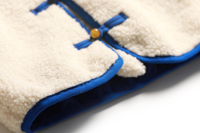 柔柔软软像云朵的羊羔毛质感,搭配上对襟立领和经典盘扣,中国风和时尚元素的碰撞,洋气之余带点可爱。