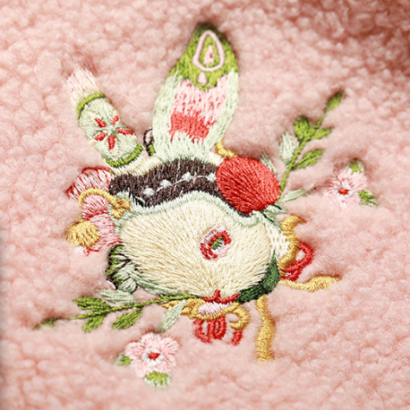 左襟小兔子绣花,和领口斜襟几何绣花相呼应,精致有型。