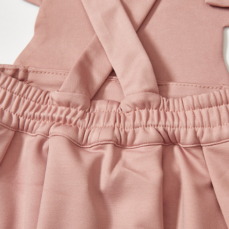下摆是撞色的,加了牙边装饰,也非常的精致。肩带开双扣眼,是可以调节的。松紧腰头很方便穿着。