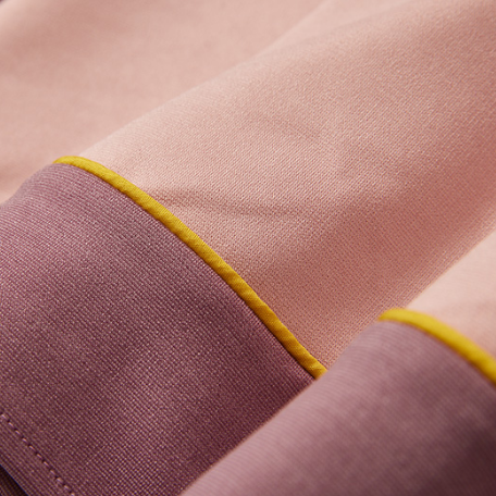 套头的休闲版型也很好穿,袖口、领口和下摆是罗纹收口,防风又保暖。