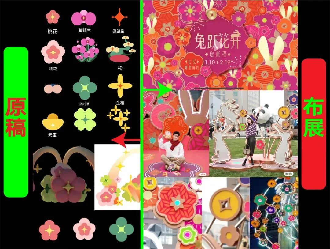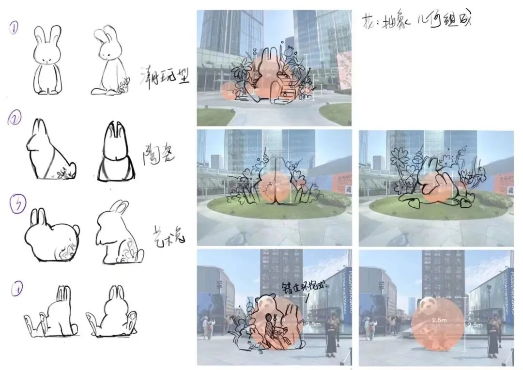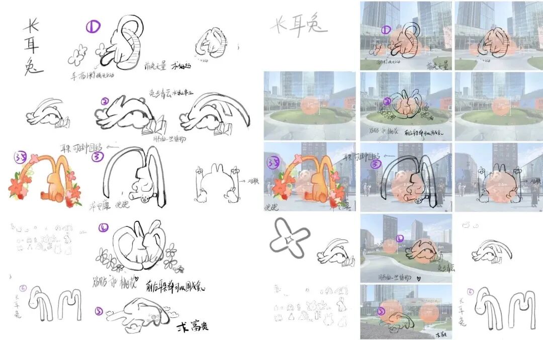 团队递交提案的每个装置组合的创意都是:兔+花