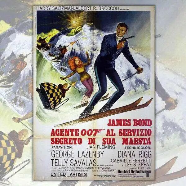 1969年的老电影《007之女王密使》(On Her Majesty's Secret Service)中就已经有了滑雪服时尚,也就是snowcore的萌芽趋势。 颜色明亮的针织毛衣、弹力裤,再配上羽绒夹克,就是上世纪七十年代标准的snowcore风格。