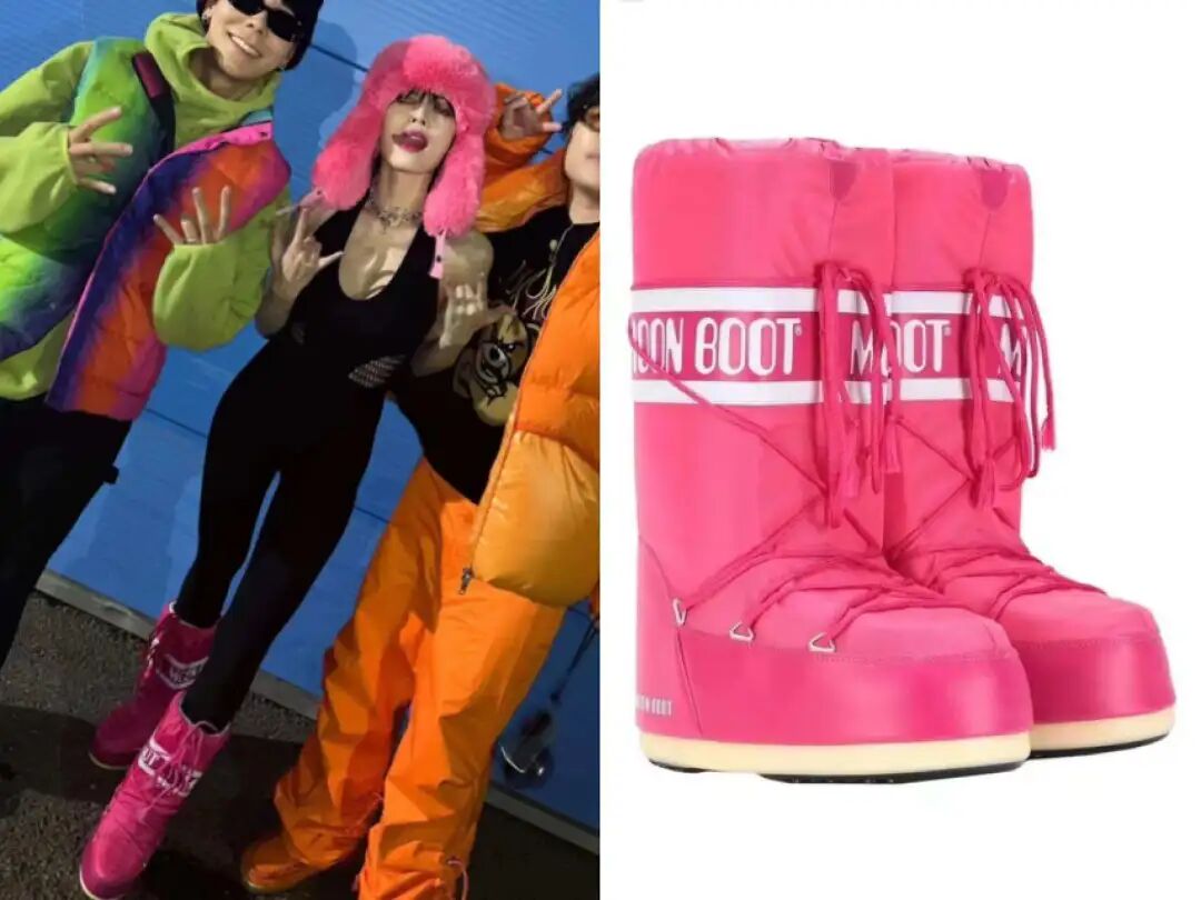 热门滑雪经济下,snowcore的每个构成单品都有标志性的品牌。从女团和小红书博主穿搭中不难发现,snowcore最精髓的部分,就是一双具有冬日特色的雪地靴。而当下最流行的雪地靴,莫过于Moon Boot(月亮靴)。泫雅的经典冬日造型中就有Moon Boot的出现。