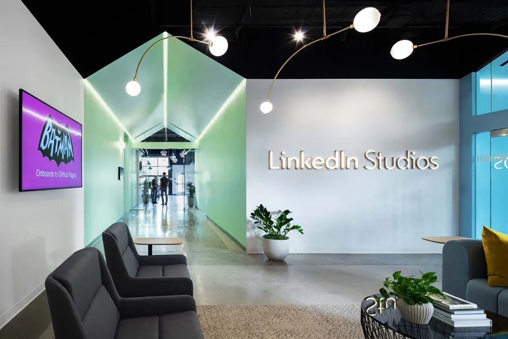Tags:科技,LinkedIn领英、The Garage车库文化、一流影音环境、可持续性、电影制作和音频编辑元素、时尚办公网