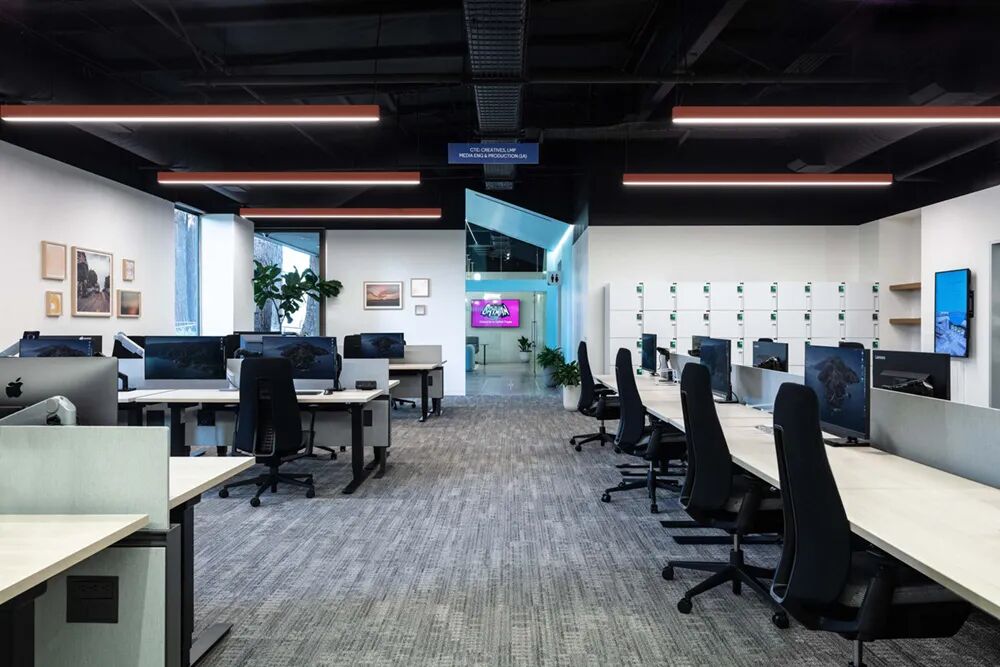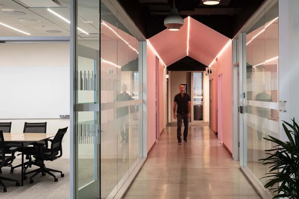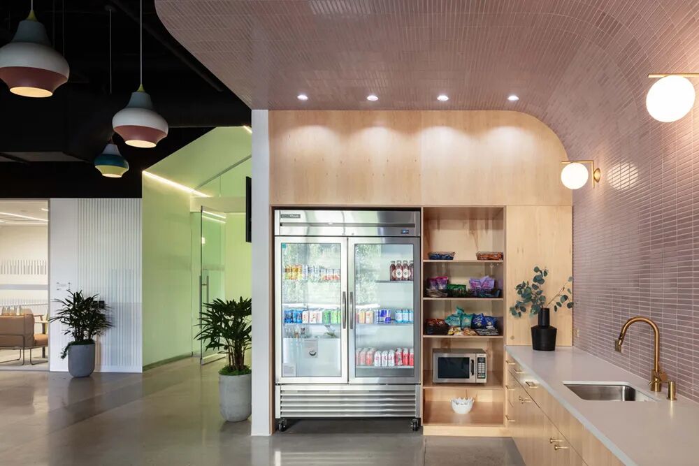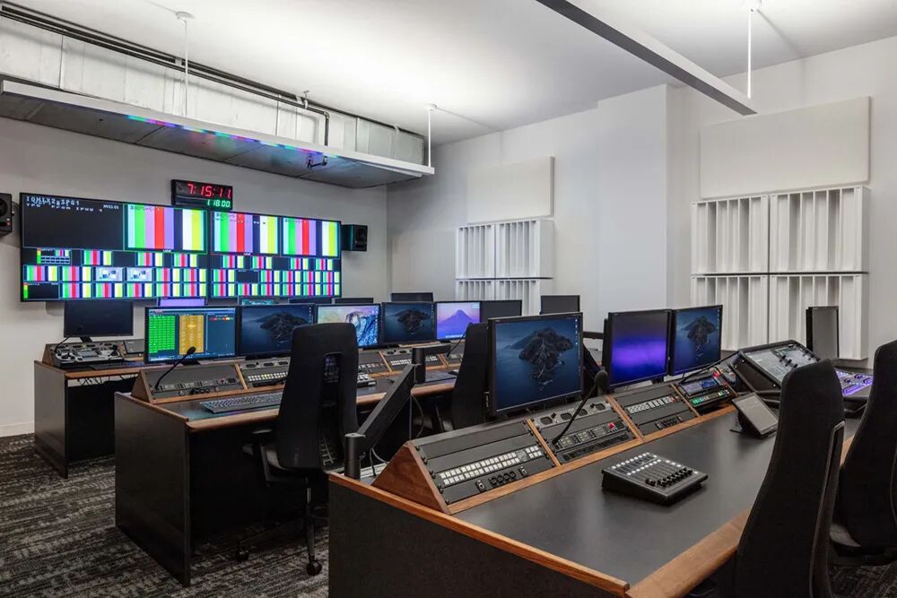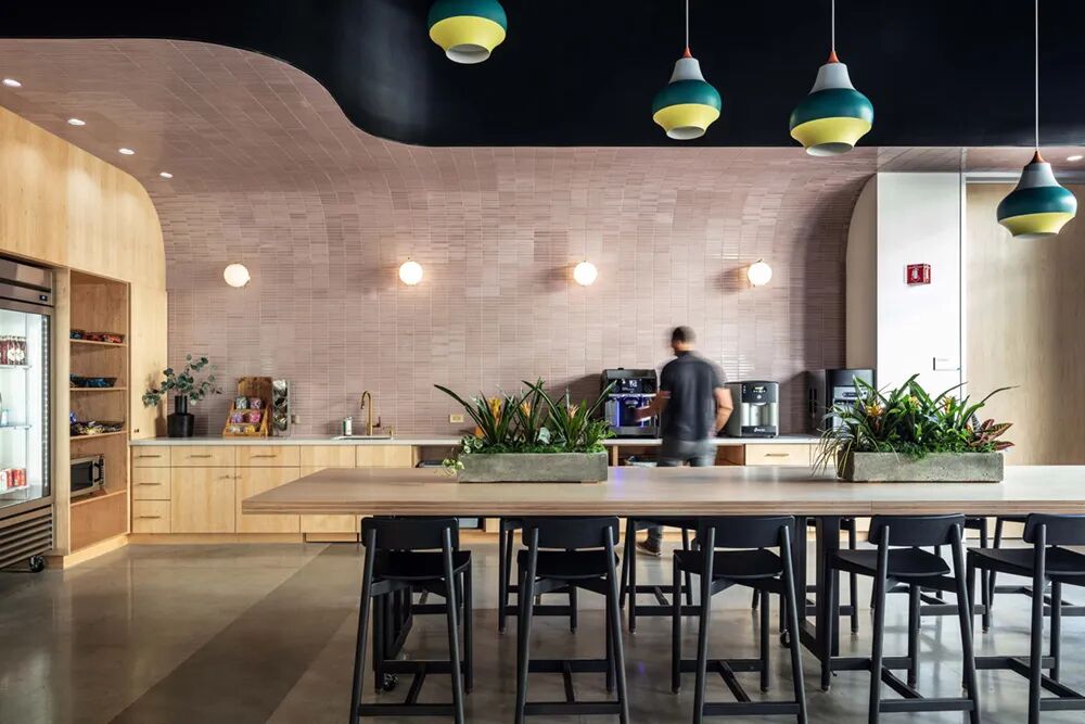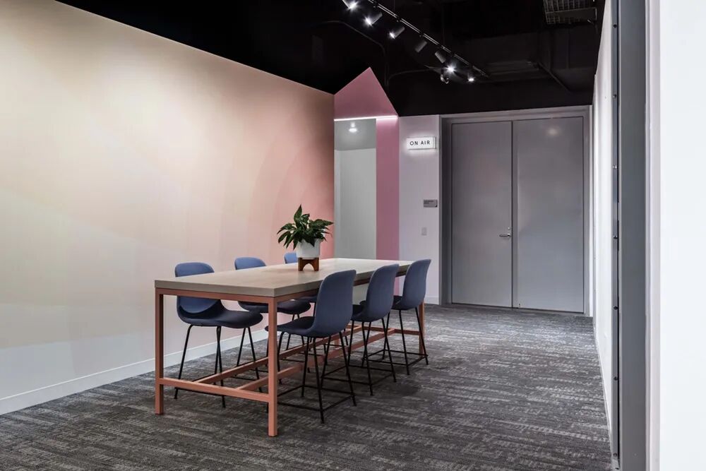 IA设计团队为LinkedIn媒体制作团队打造的创新工作室“Production Center”,旨在培养创造力,并支持高度技术化的视频制作流程,同时确保员工在后疫情时代的安全与健康。该设计将视觉、故事性和工作空间与最先进的视听工作室环境无缝融合,将LinkedIn创意和技术团队集中于一个屋檐下,以简化视频点播和直播内容制作。