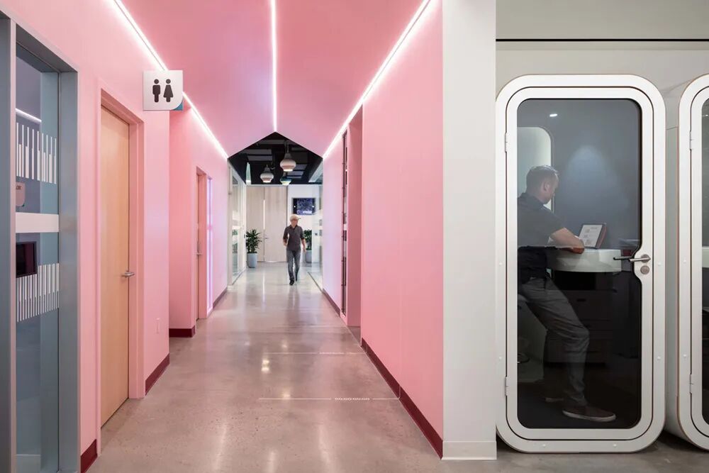 职场社交平台LinkedIn(领英)在其美国加州桑尼维尔园区创立了一处名为Production Center(制作中心)的创意工作室,本案由Interdisciplinary Architecture(IA)设计团队精彩呈现。