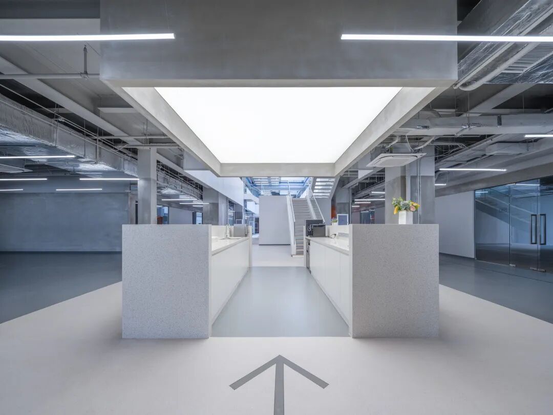 建筑师利用细腻且带沉静的水泥作为整体空间基底,并辅以大面积的白色及灰色地砖、涂料及穿孔铝板,让办公空间产生出沉静、优雅的气质,在单纯的空间中发挥出精练的质地。