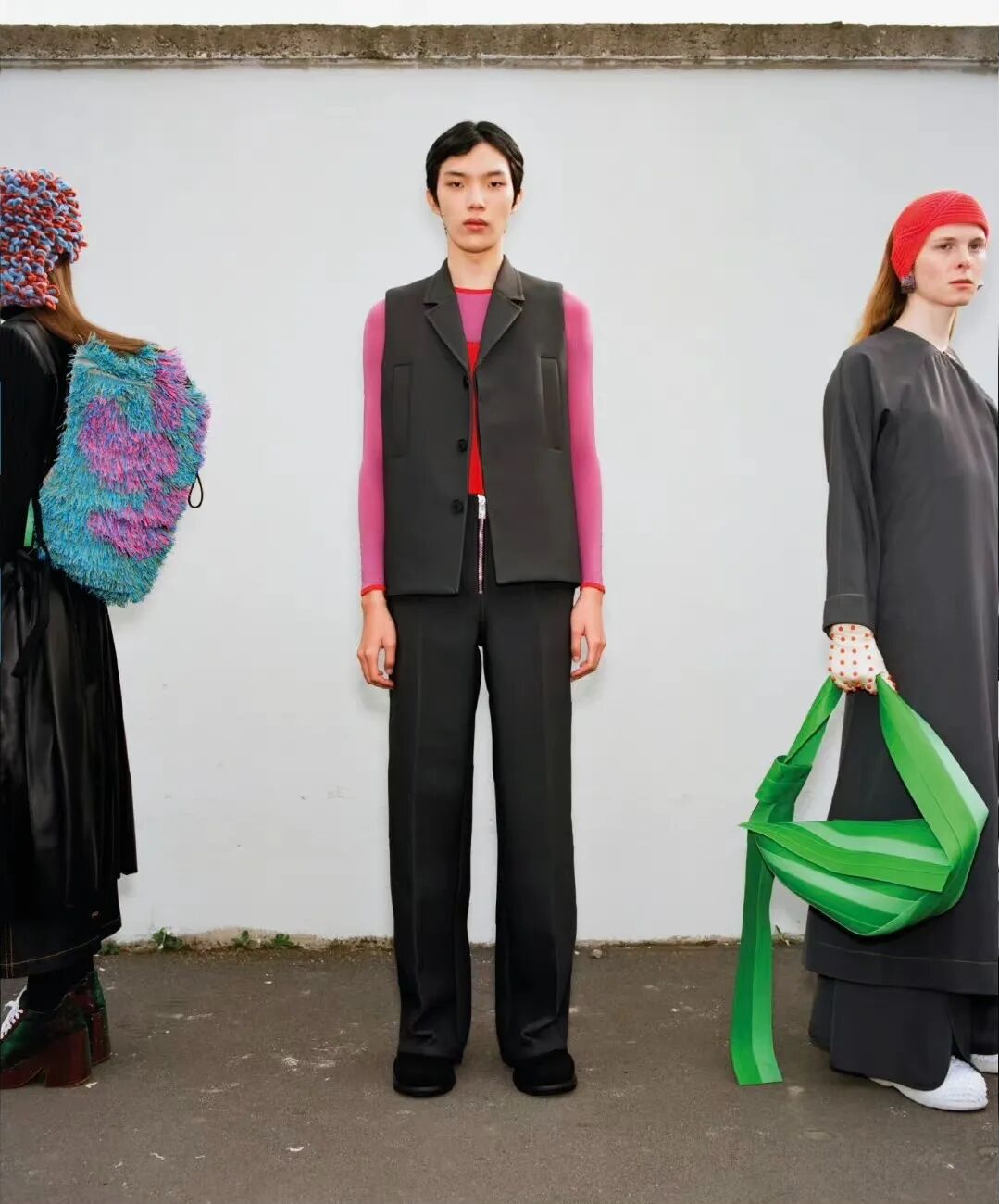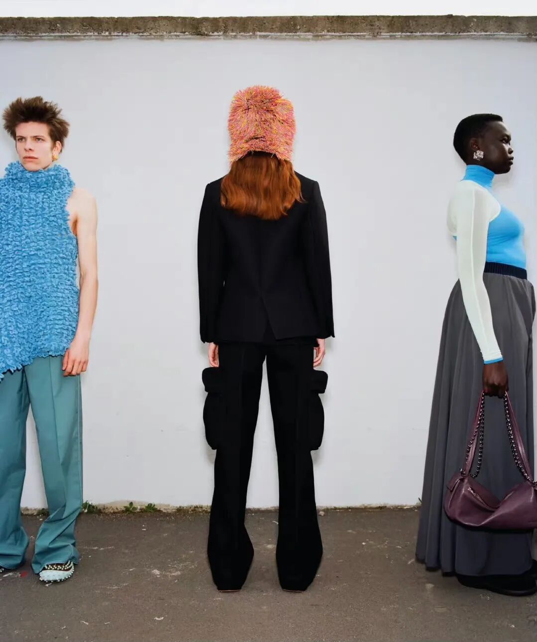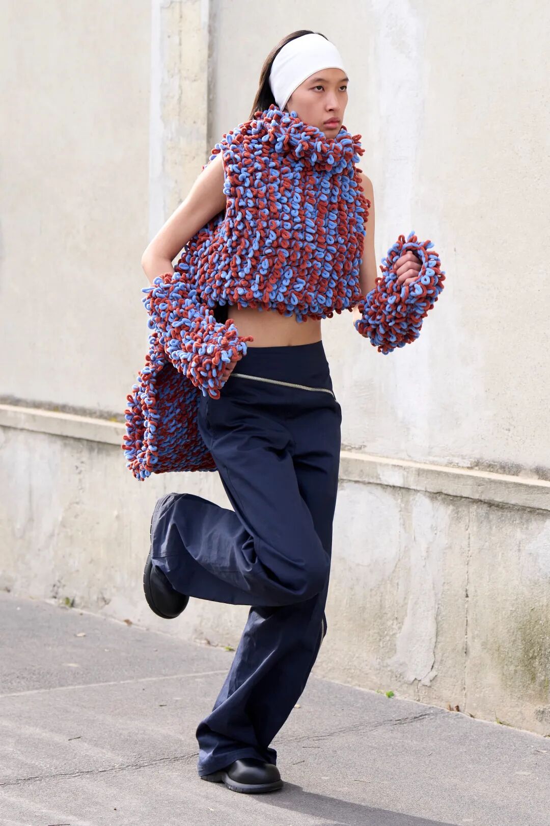 对1990和2000年代的怀旧情怀亦于此次发布中最闪耀的绒球元素中得以体现,模特们没有走路,而是沿着墙壁一路跑来,作为一种隐喻的‘当下的结晶’,同时也带有趣味性。