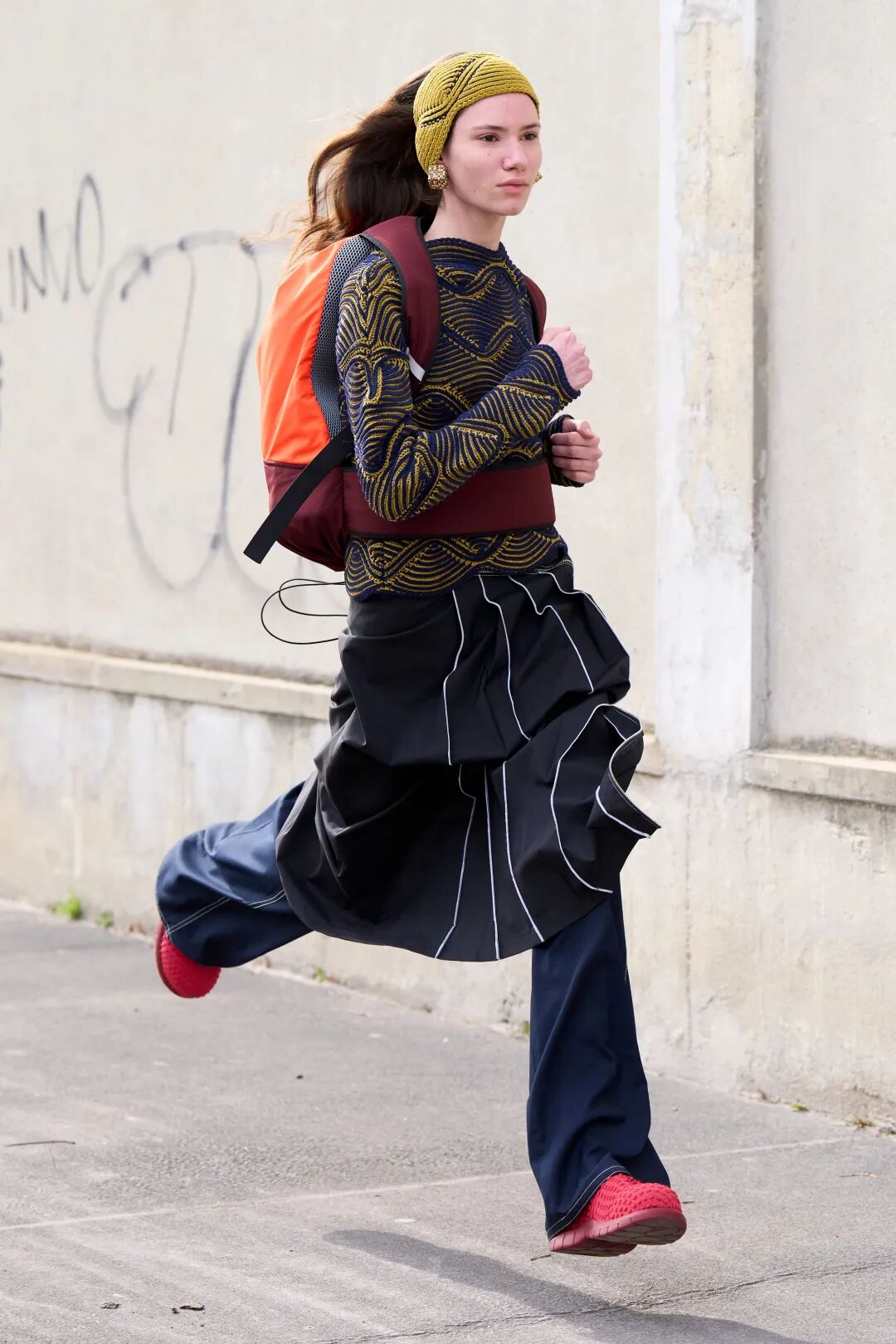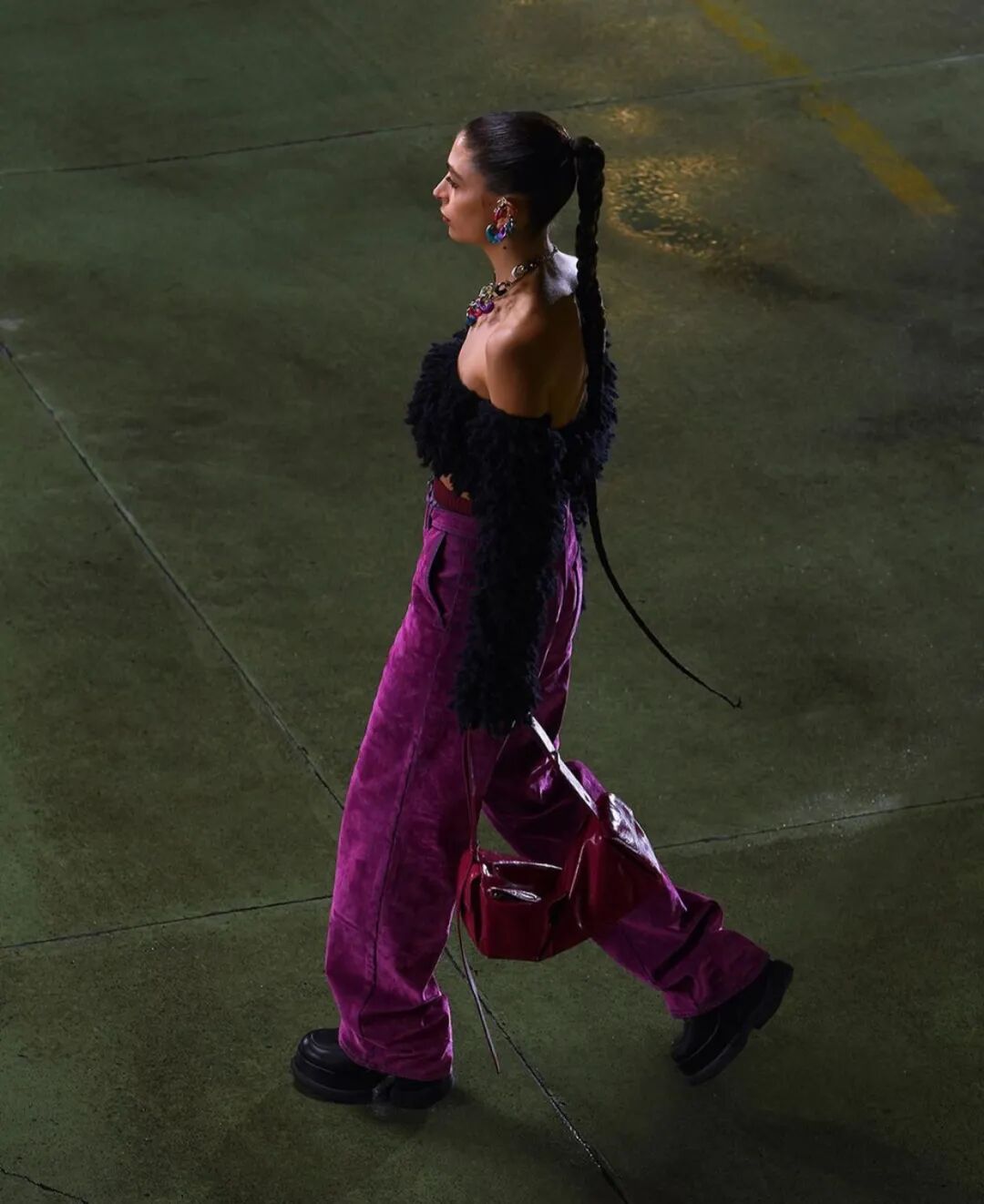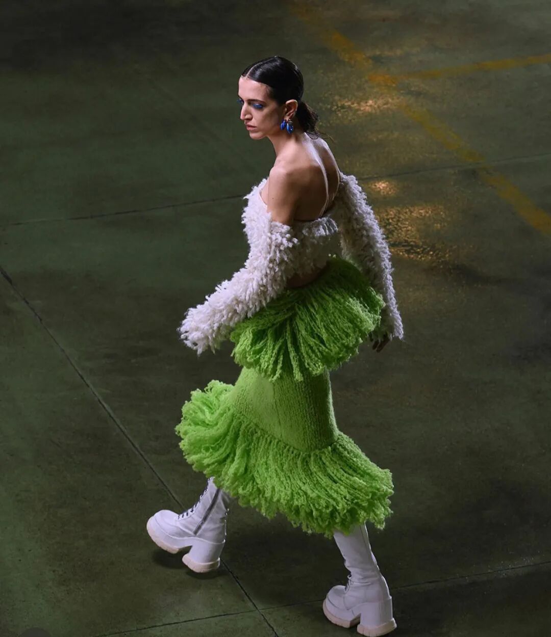 对1990和2000年代的怀旧情怀亦于此次发布中最闪耀的绒球元素中得以体现,模特们没有走路,而是沿着墙壁一路跑来,作为一种隐喻的‘当下的结晶’,同时也带有趣味性。