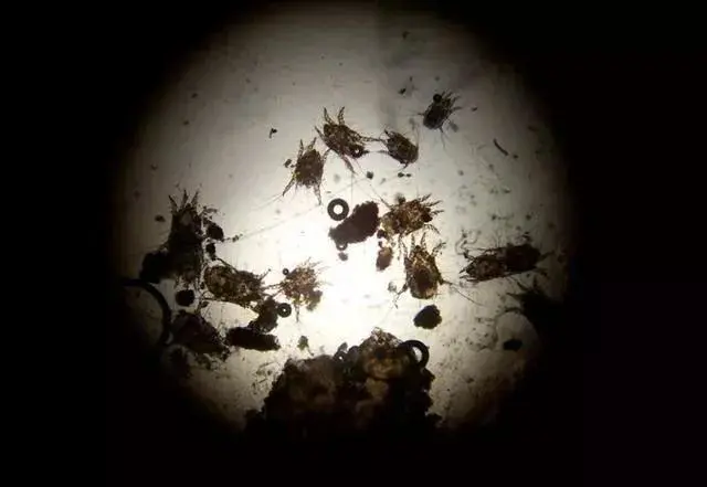 品牌方给我发了一张显微镜下,除螨10多天的除螨包:发现里面满满的都是螨虫尸体和排泄物。