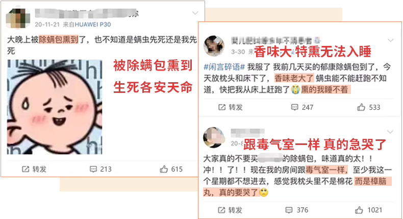 有些除螨包味道熏人✘,甚至有些为了好闻添加人工香料✘