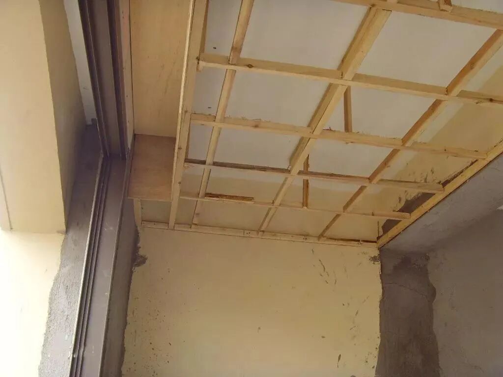 b、根据尺寸,提前在原建筑墙面上钉上木龙骨。龙骨吸顶吊件用膨胀螺栓与钢筋混凝土板固定。