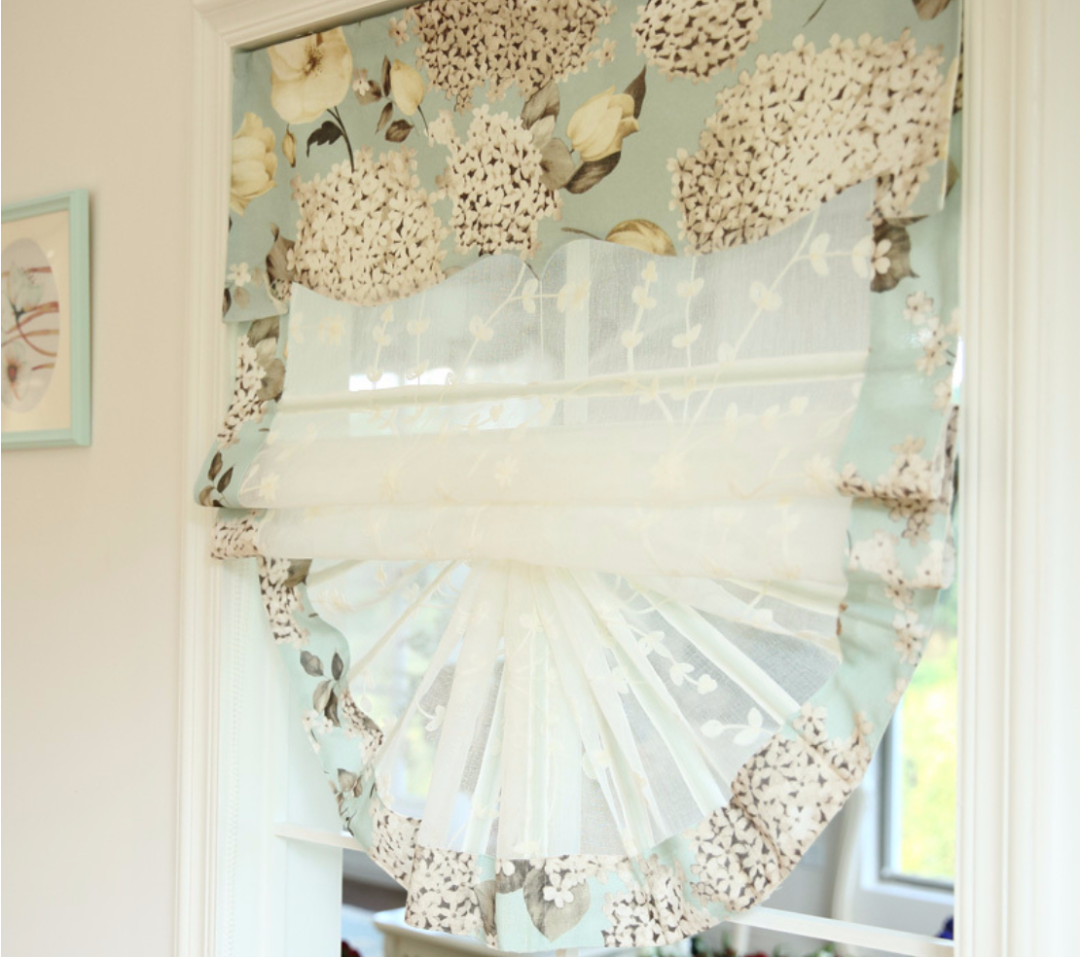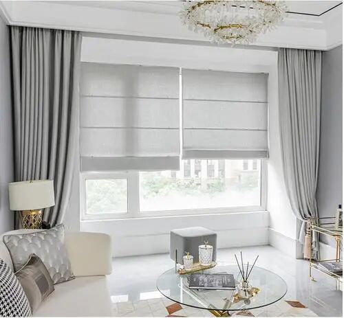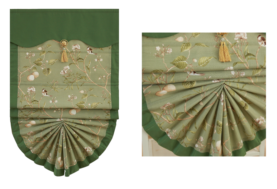 罗马帘的材质使用多样,常见的形状有折叠式、扇形式、波浪形式等。