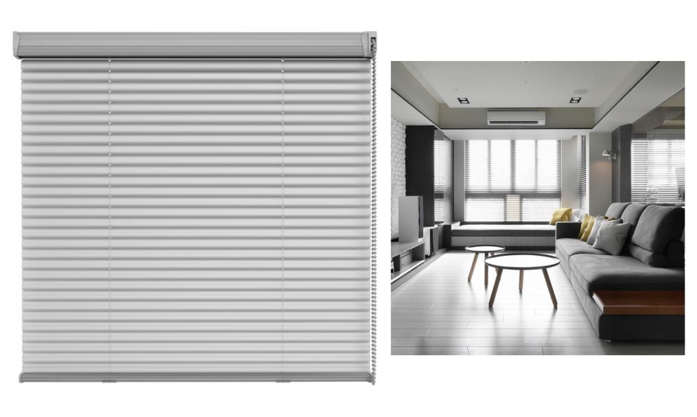 顾名思义,日常的收拢主要那像幕布一般,通过抽拉进行收拢,日常使用在窗户较小的区域,相对来说不太美观。