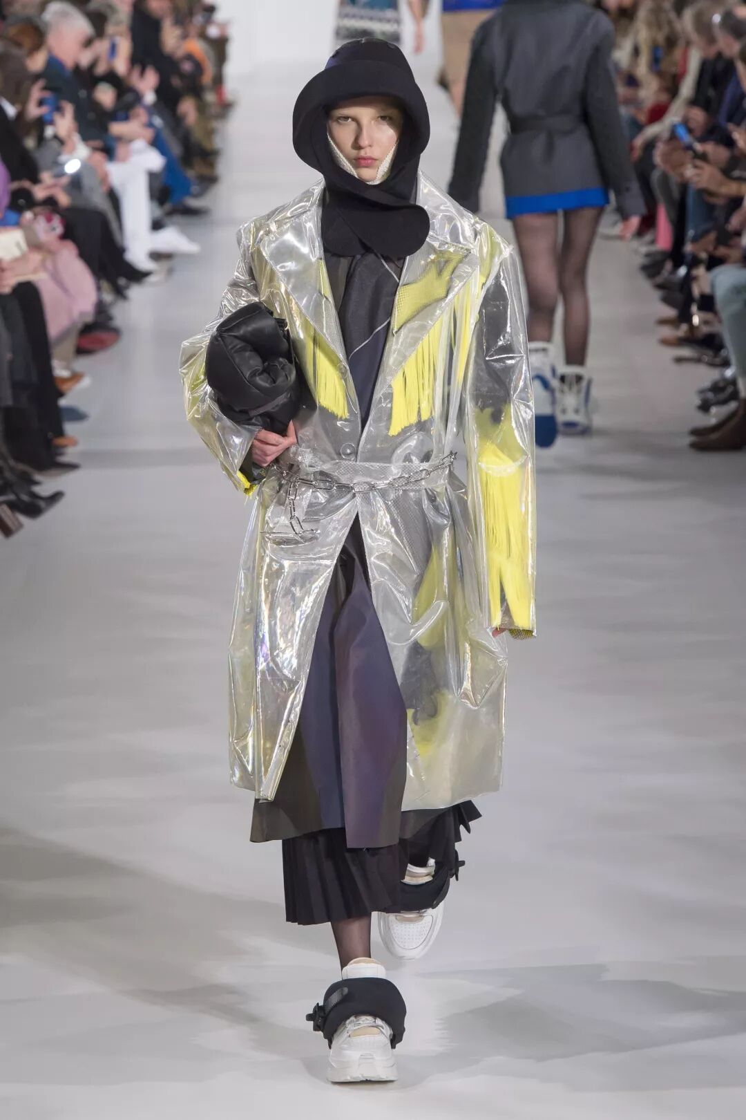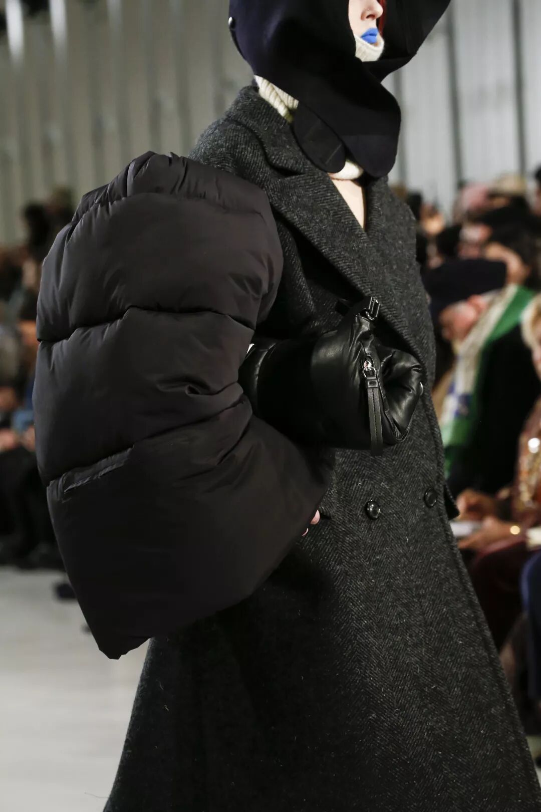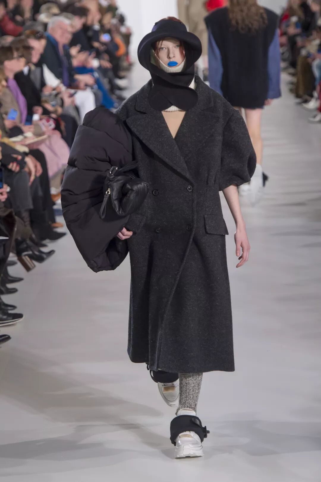 当然这种千奇百怪的设计,肯定是少不了川久保玲的,Comme des Garcons Fall 2018中,也出现了全封闭与半封闭模式混合的供“起床困难户们”随时补觉的装备