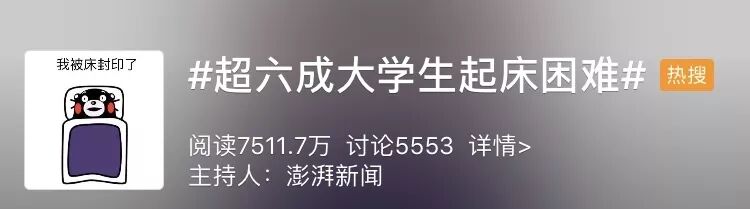 据调查,有超六成大学生起床困难,试问这种“人之常情”又有什么好惊讶的呢?天气这么冷,谁不想也被子和枕头多呆一会呢