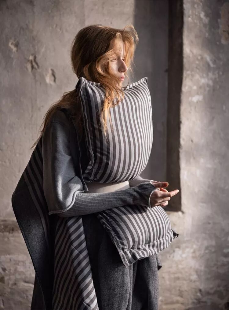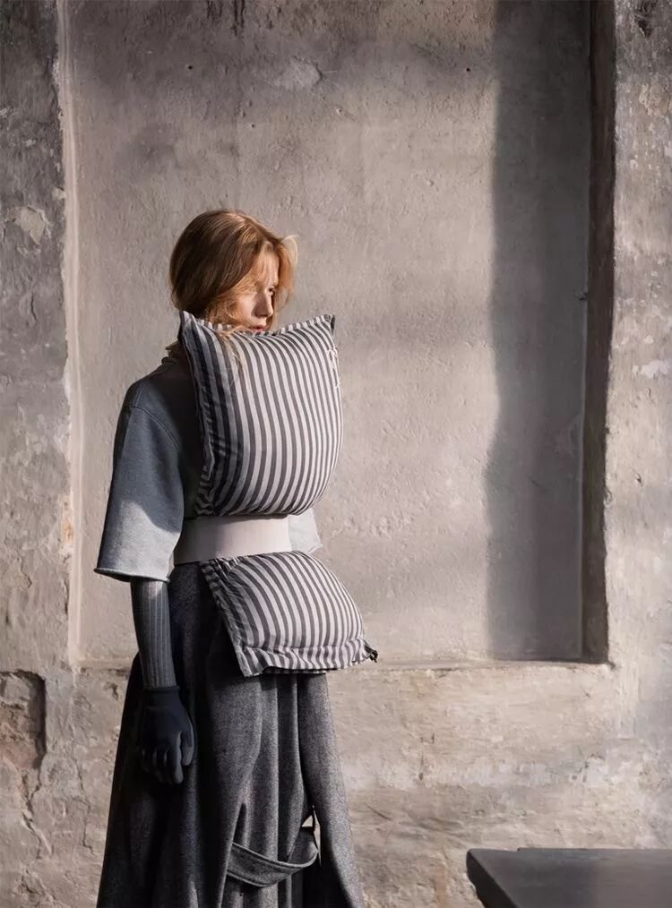 而在Maison Margiela AW 2018睡眠套装再度升级,羽绒包包被环绕在了手臂上,更加方便、更加舒适,随时随地倒头便睡的Slogan未言先明,而且还有多种色彩任君挑选