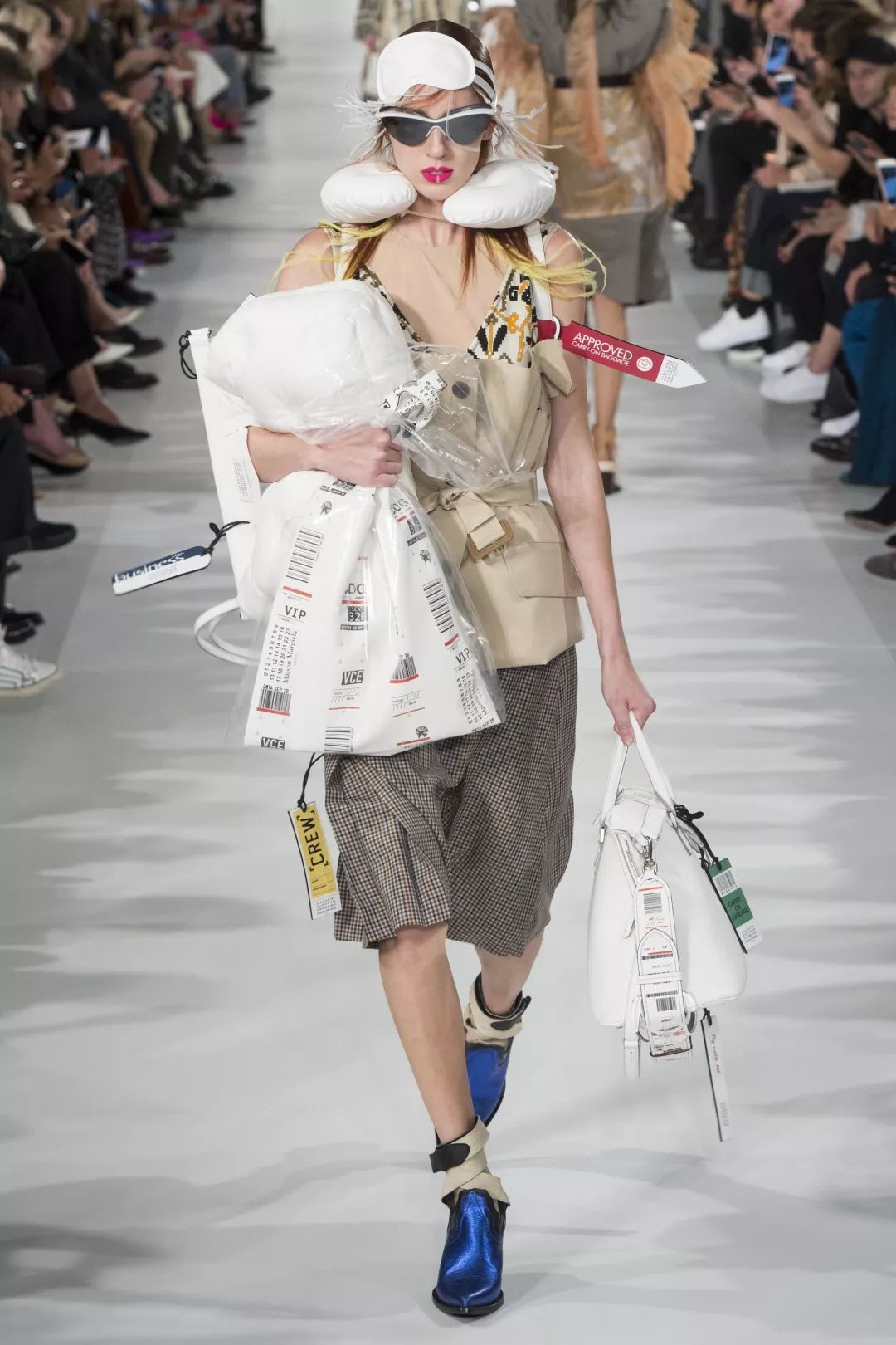 John Galliano这个设计奇才早就为“起床困难户”量身打造了睡眠套装。Maison Margiela SS 2018秀场中,U型颈枕与羽绒包包的出现,组成的简直就是一套出差狂魔Look。