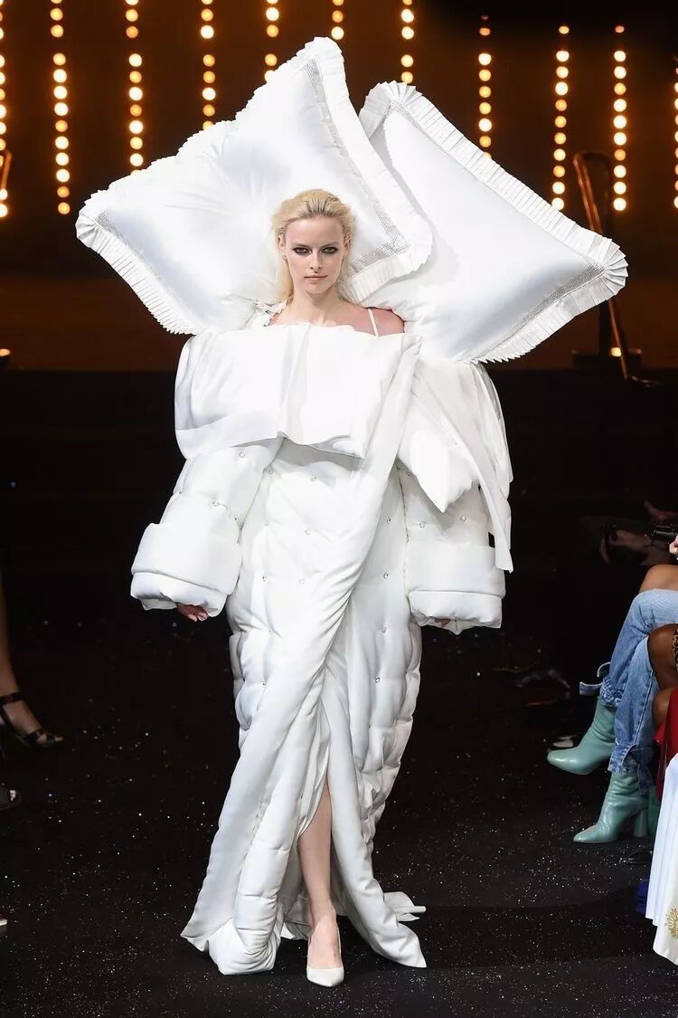 /“床上四件套”竟成为时装周超火设计?模特穿上”枕头棉被”走秀,起床困难户的必备潮流时装!