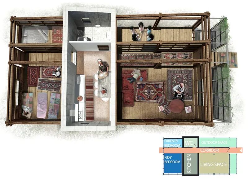 为迎合人为和自然灾害的受害者,模块化住宅旨在创造一个具有成本效益和尊严的住宅,这种设计是由建筑师协会和瑞典哥德堡查尔姆斯大学合作开发的,为Al-Zaatari营地的叙利亚难民建造一个避难所。