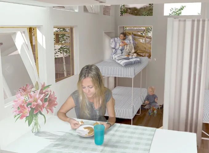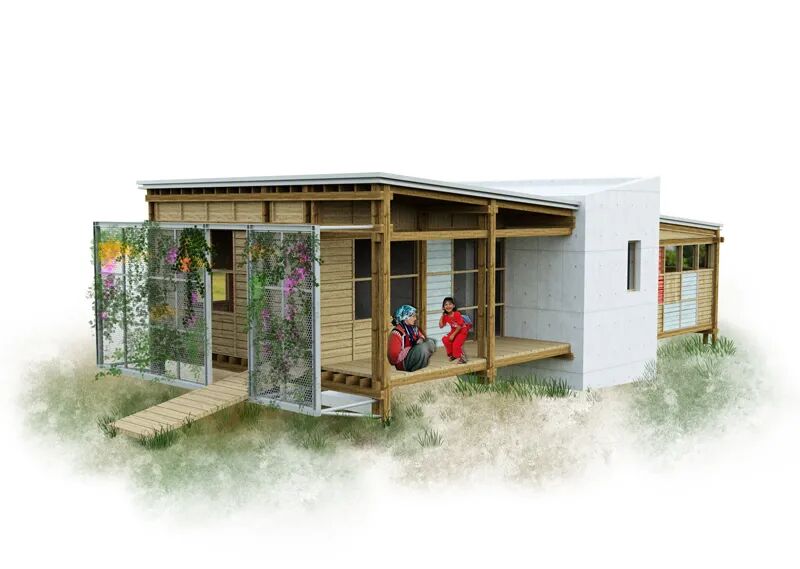 设计的主要组成部分是包含厨房和浴室的预制混凝土核心,这个核心由当地的建筑公司提供,居民可以围绕这个核心建造一个轻型木结构以满足他们的需求。