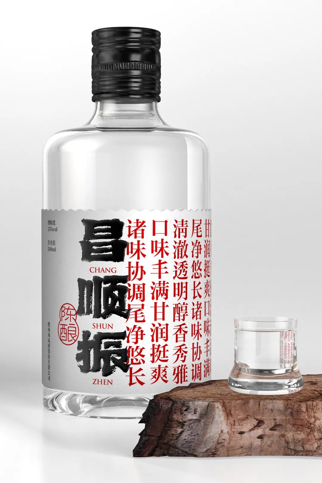 瓶身上的“昌顺振”以红色毛笔字呈现