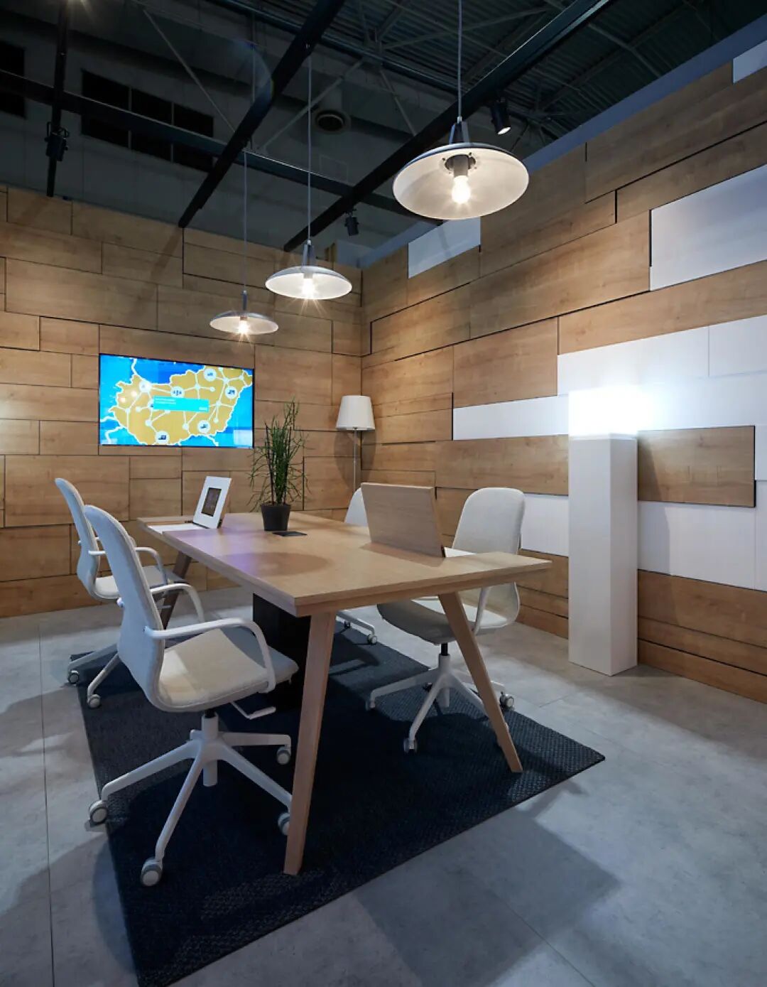 我们以互动的方式展示了参展企业的产品。游客可以在现场体验、尝试大多数的解决方案。这方面的一个例子是:当访问者坐下来,从而激活作为虚拟助手或聊天机器人的应用程序,启动对话并在镶嵌在方块中的显示器上显示所请求的信息。