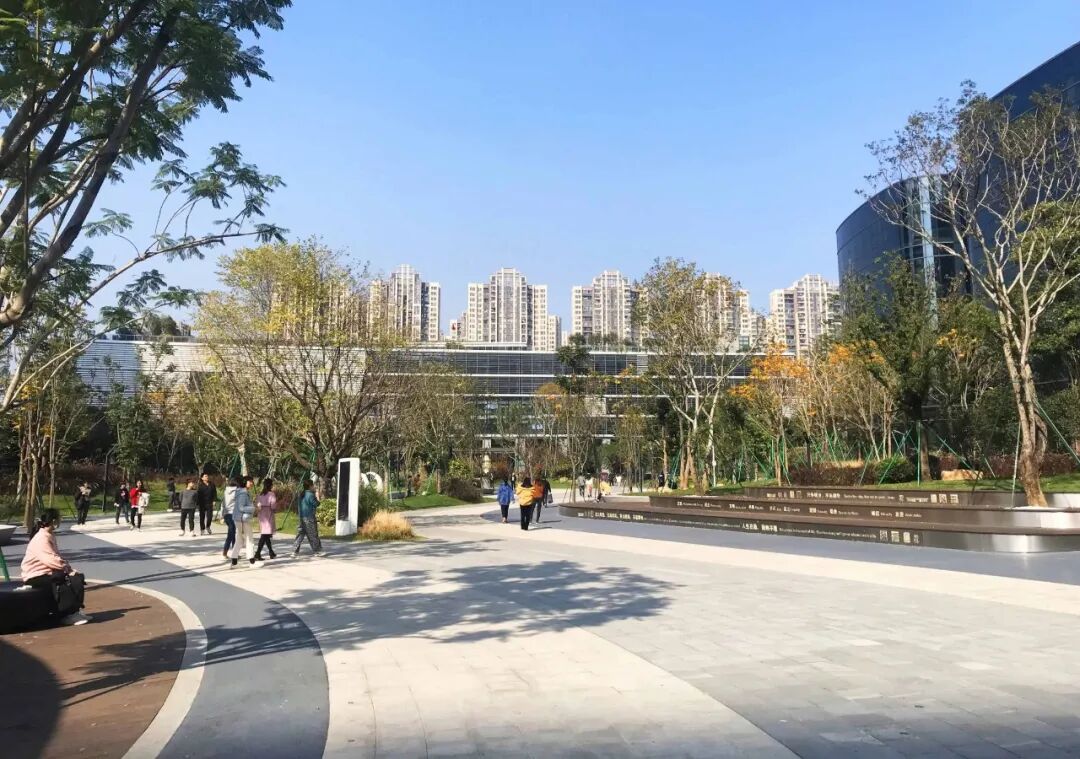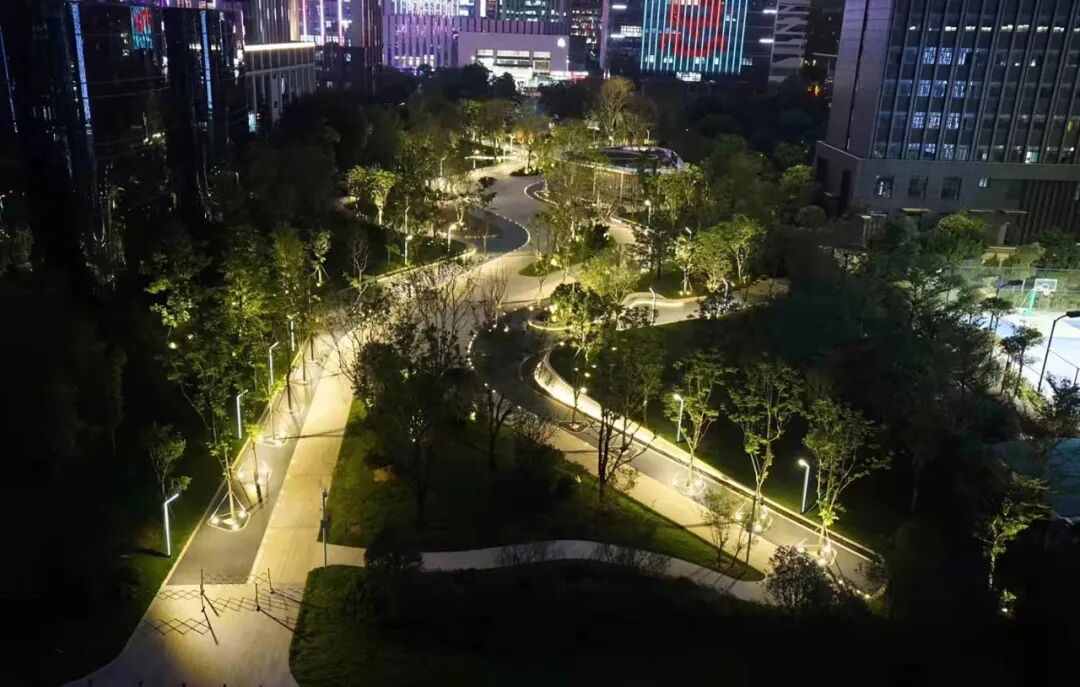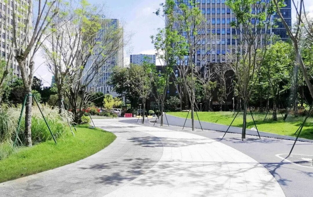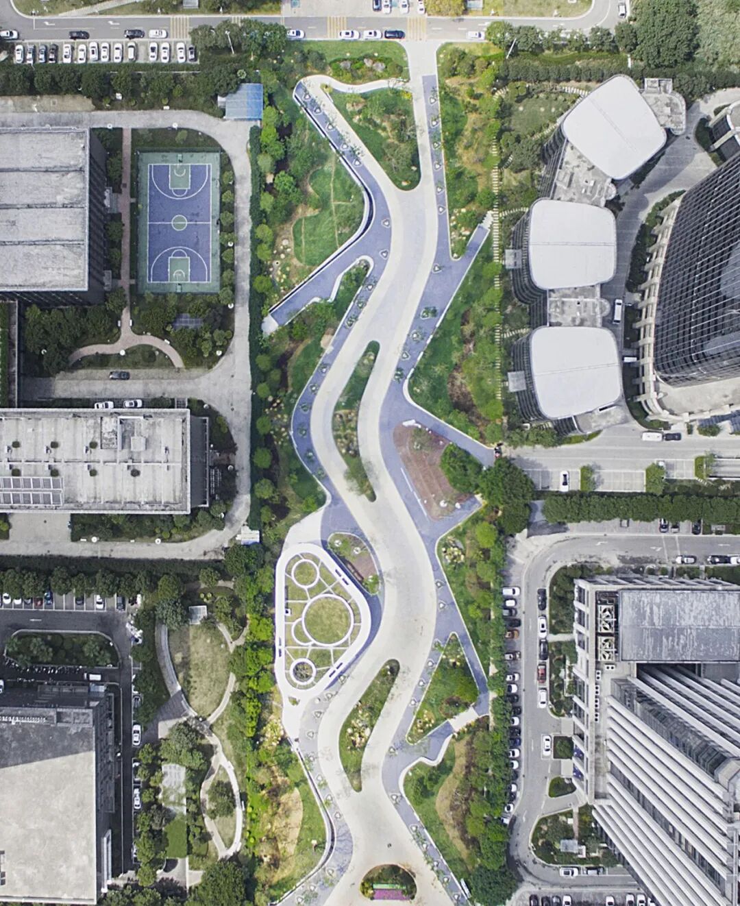 它不仅是不同企业之间的隔离景观带,也是一个环境优美、景观宜人、具有活力的共享空间。中午午休及下班之后,可以看到大量在园区的办公人员在园中散步驻足,工作饱和紧张时可到户外共享办公,调节压力与状态,使工作场所也变得更加灵活、协作和开放。